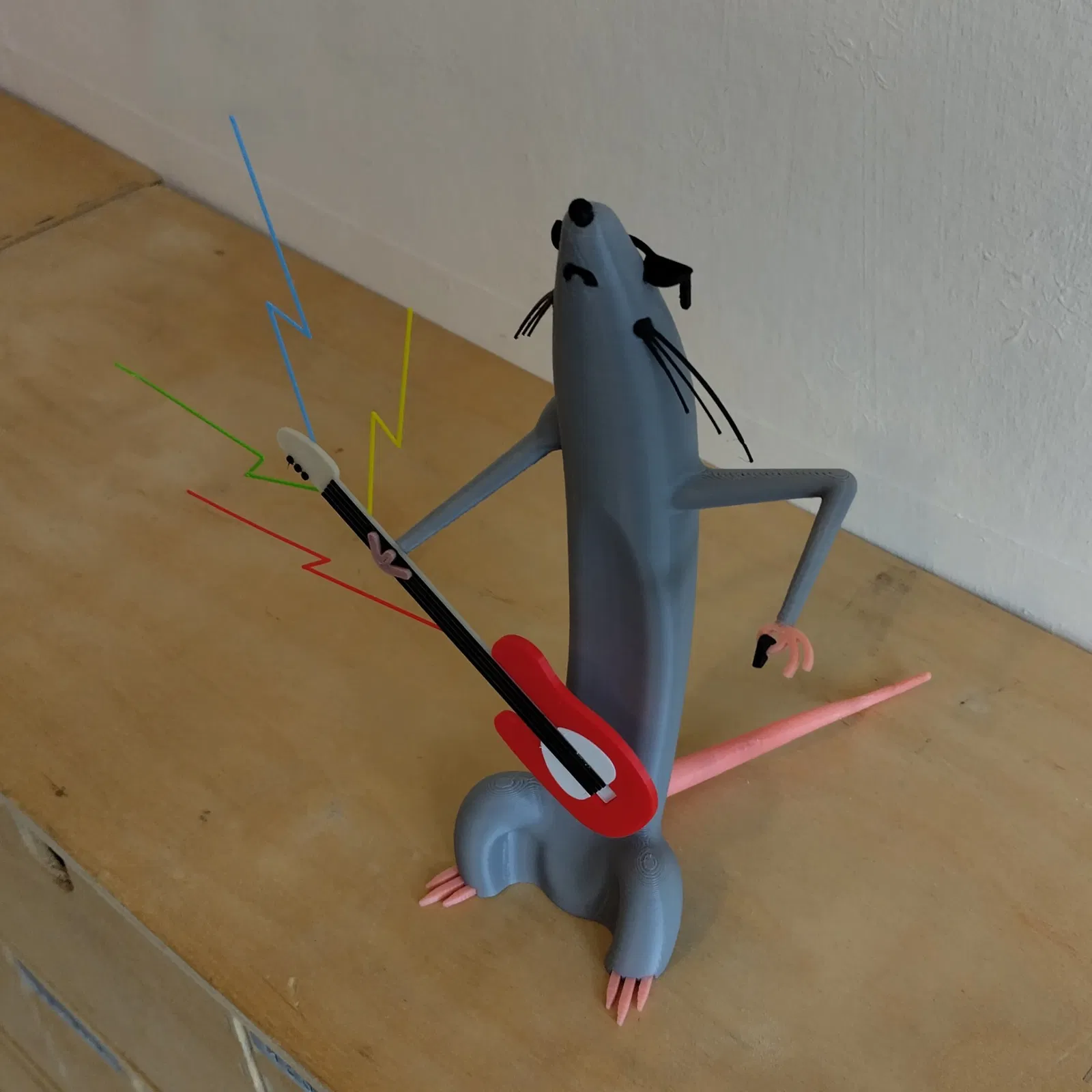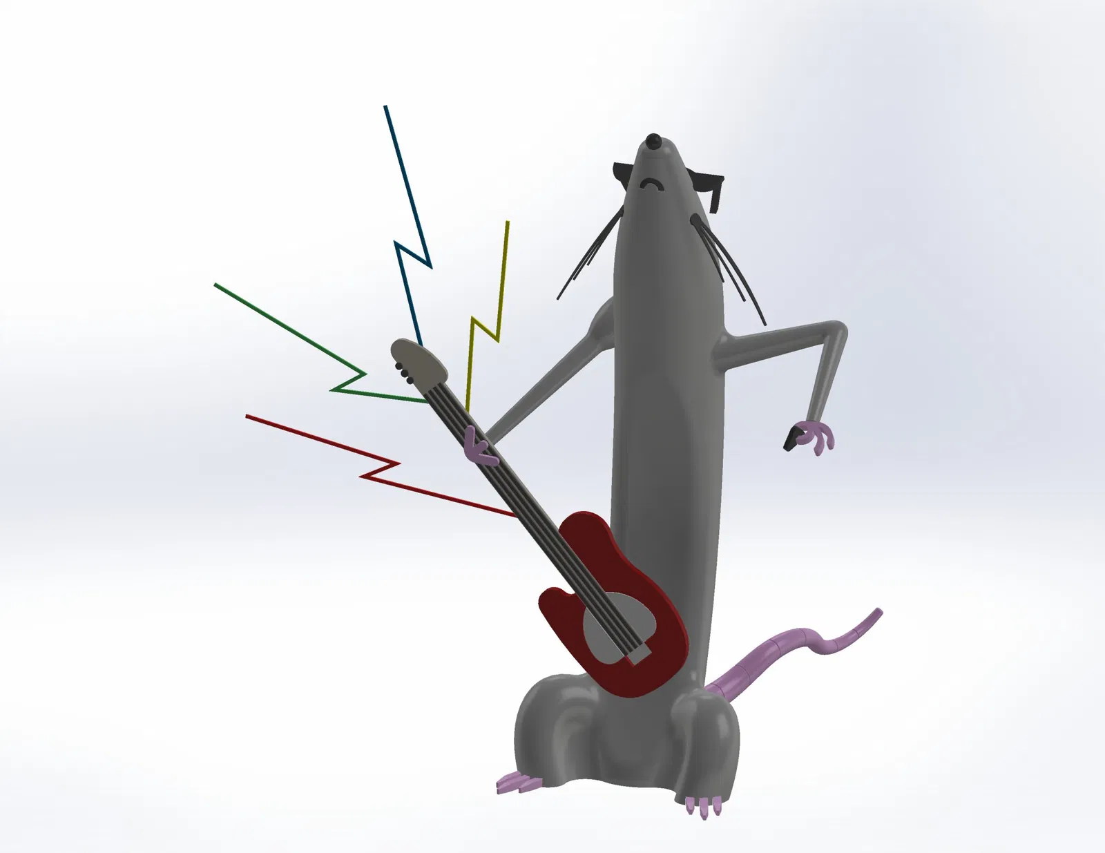 Chuột Tomska chơi guitar trong mô hình 3D thú vị