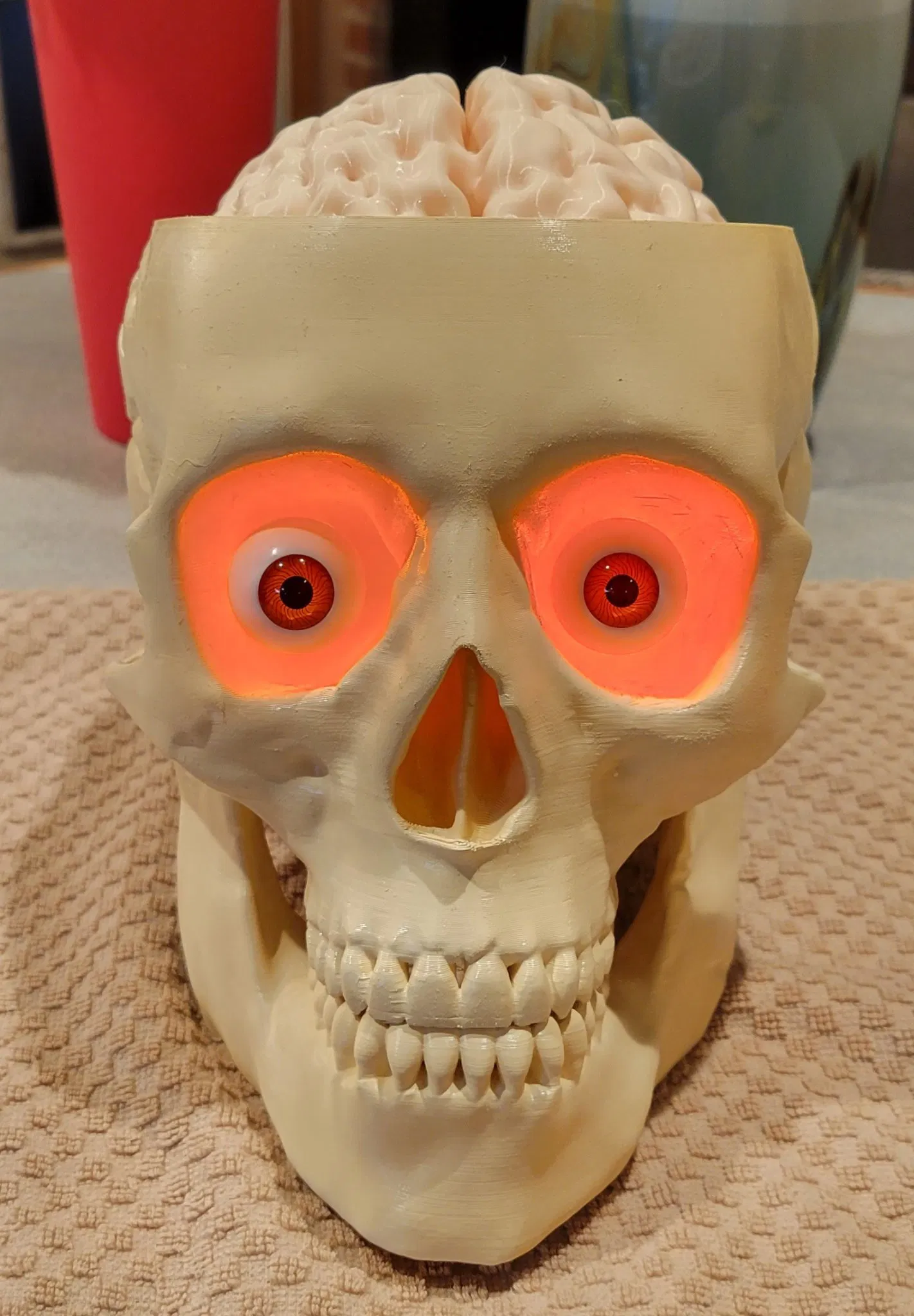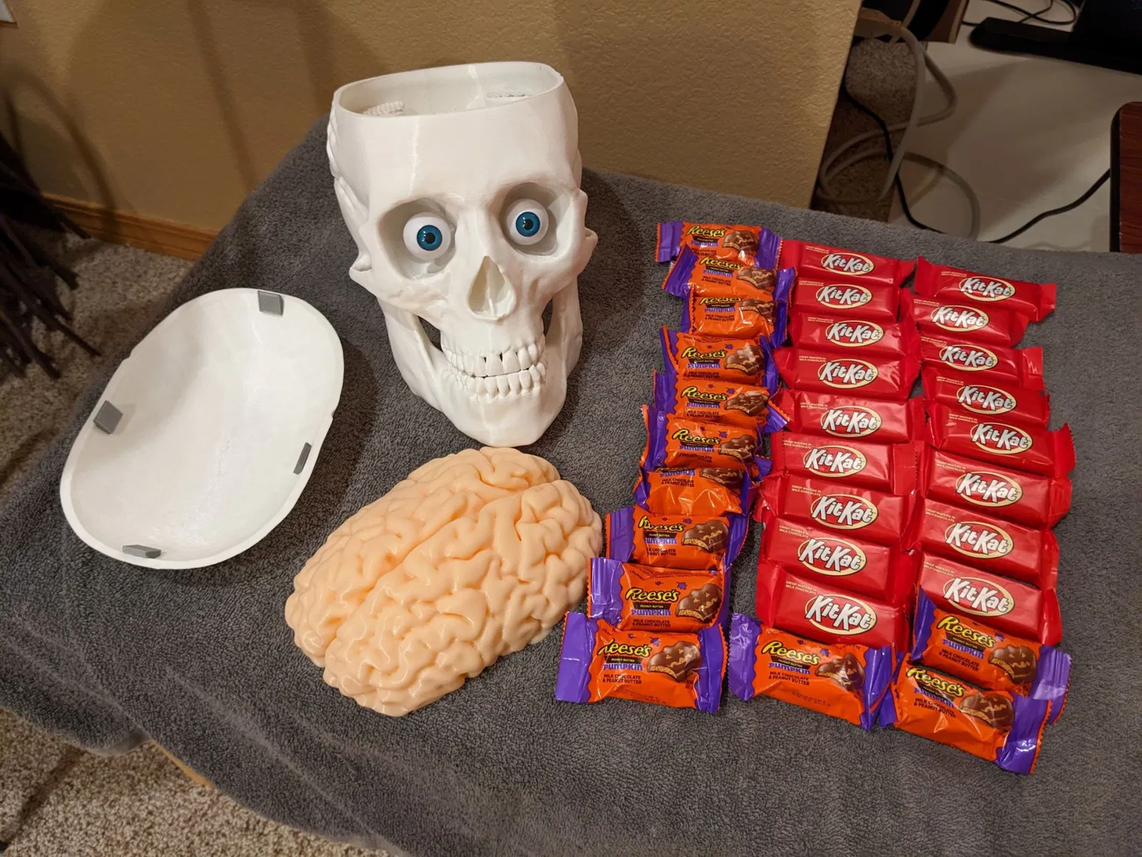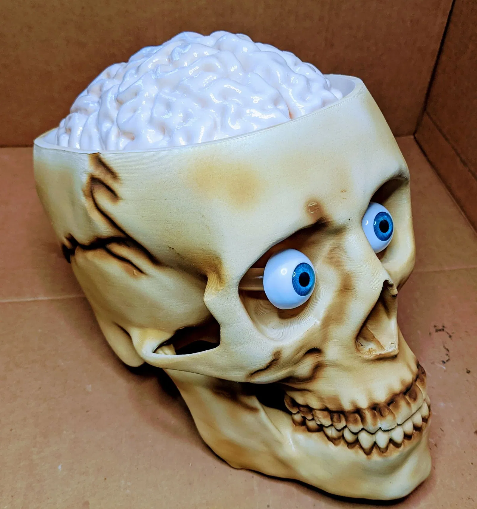 Thùng Đựng Kẹo Sọ Não (Có Thêm Phiên Bản Đèn) giúp bạn phát quà ma quái, trang trí hoặc làm thùng đựng đồ ăn vặt. Mô hình sọ não kích thước thật, dễ in, có tùy chọn thêm đèn LED tạo hiệu ứng rùng rợn. Có thể in thêm mũ sọ, hàm và tùy chỉnh mắt.