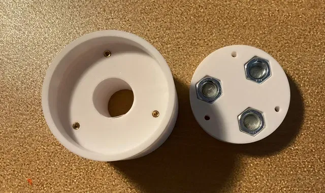 Một đế đa dụng 80mm cho đèn sử dụng đui E14. Có thể dùng cho chao đèn, hoặc làm phần nối dài cho đèn cao hơn, có khoảng trống 30mm có thể cố định bằng vòng cổ E14. Phần chèn cho đế đai ốc được hiển thị, cho phép kết nối vỏ đèn với vít lục giác M3x10. 3 cái đai ốc M12 có thể được dán vào đế có thể gắn để thêm trọng lượng cho đế đèn. Một file STL cho miếng đệm mỏng mờ cũng được cung cấp. Khi sử dụng vật liệu nhẹ hơn, ánh sáng có thể xuyên qua đế. Miếng đệm chặn ánh sáng để ngăn chặn điều đó. Miếng đệm nằm giữa chao đèn và đế. Không cần hỗ trợ. Đui đèn Fassung (E14-28mm): https://www.amazon.de/dp/B097K4YNL9 Dây điện và công tắc: https://www.amazon.de/dp/B002DAOX58 Bóng đèn E14 được sử dụng ở đây: https://www.amazon.de/dp/B0B5MPL9MX 3 x Vít M3x10 https://de.aliexpress.com/item/32443118299.html? 3 x Đai ốc M12 (Để tăng trọng lượng) https://www.amazon.de/dp/B01M30BU88? 3 x Chèn ren M3 https://www.amazon.de/dp/B08BCRZZS3? Cài đặt máy in 3D cho đế và phần đáy có ren: .20 mm Tiêu chuẩn và (Tất cả cài đặt và tốc độ tiêu chuẩn, cài đặt đường nối ngẫu nhiên Chất liệu in: Prusament Galaxy Black/Vanilla White Ví dụ sử dụng đế này: /3d-model/chup-den-so-8