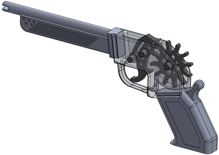 Tất cả các bộ phận đều cần (1) cái, ngoại trừ các chốt thì bạn cần (3) cái. Tôi đã in tất cả các bộ phận bằng sợi PLA màu xám lụa Overture và PLA màu đen. Sử dụng mật độ lấp đầy 15% dạng gyroid và độ dày tường 3mm để đảm bảo độ bền chắc cho tất cả các bộ phận. Tôi đã thử vài lần để căn chỉnh dung sai cho các khớp ép và khớp trượt, nhưng cuối cùng tôi phải dùng mũi khoan ¼ inch và 17/64 inch để hoàn thiện. Tương tự với các rãnh đuôi én, chỉ cần chà nhám một chút là có độ khớp hoàn hảo! Cắt một đoạn sợi filament 1.75mm dài ¾ inch để gắn vào phía trên cò súng, điều này giúp dây thun không bị kẹt xung quanh ngôi sao quay (xem video YouTube để biết chi tiết).