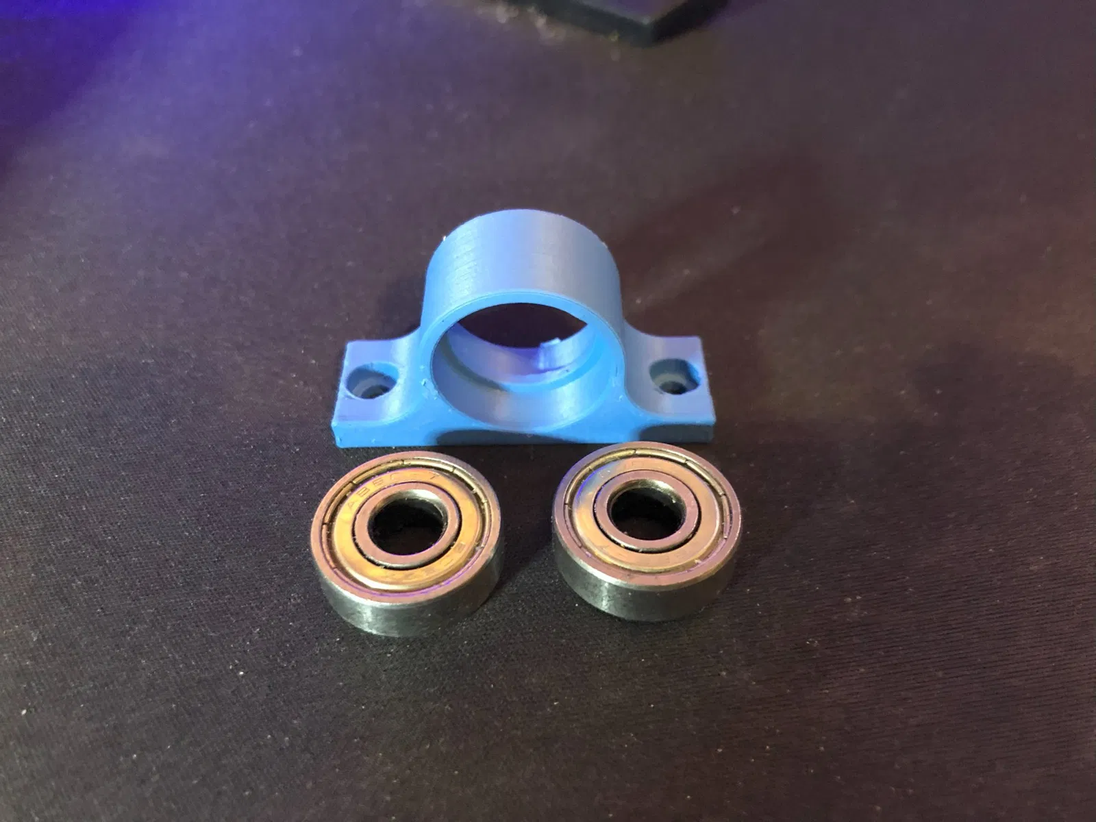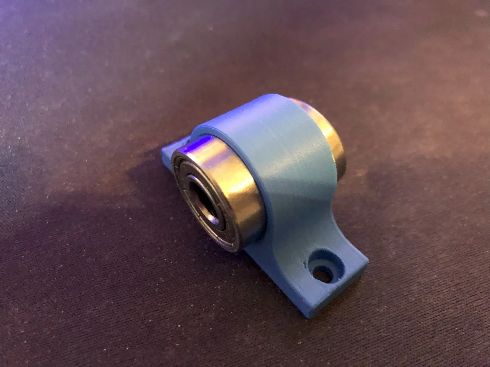 Cái vỏ này để chứa hai bạc đạn 608 tiêu chuẩn. Diện tích chiếm dụng rất nhỏ. Tui có in bằng PLA 0.20 nhưng khuyên dùng PETG hoặc ABS. Dùng kẹp hoặc ê tô để ép chặt bạc đạn vô vỏ một cách cẩn thận.