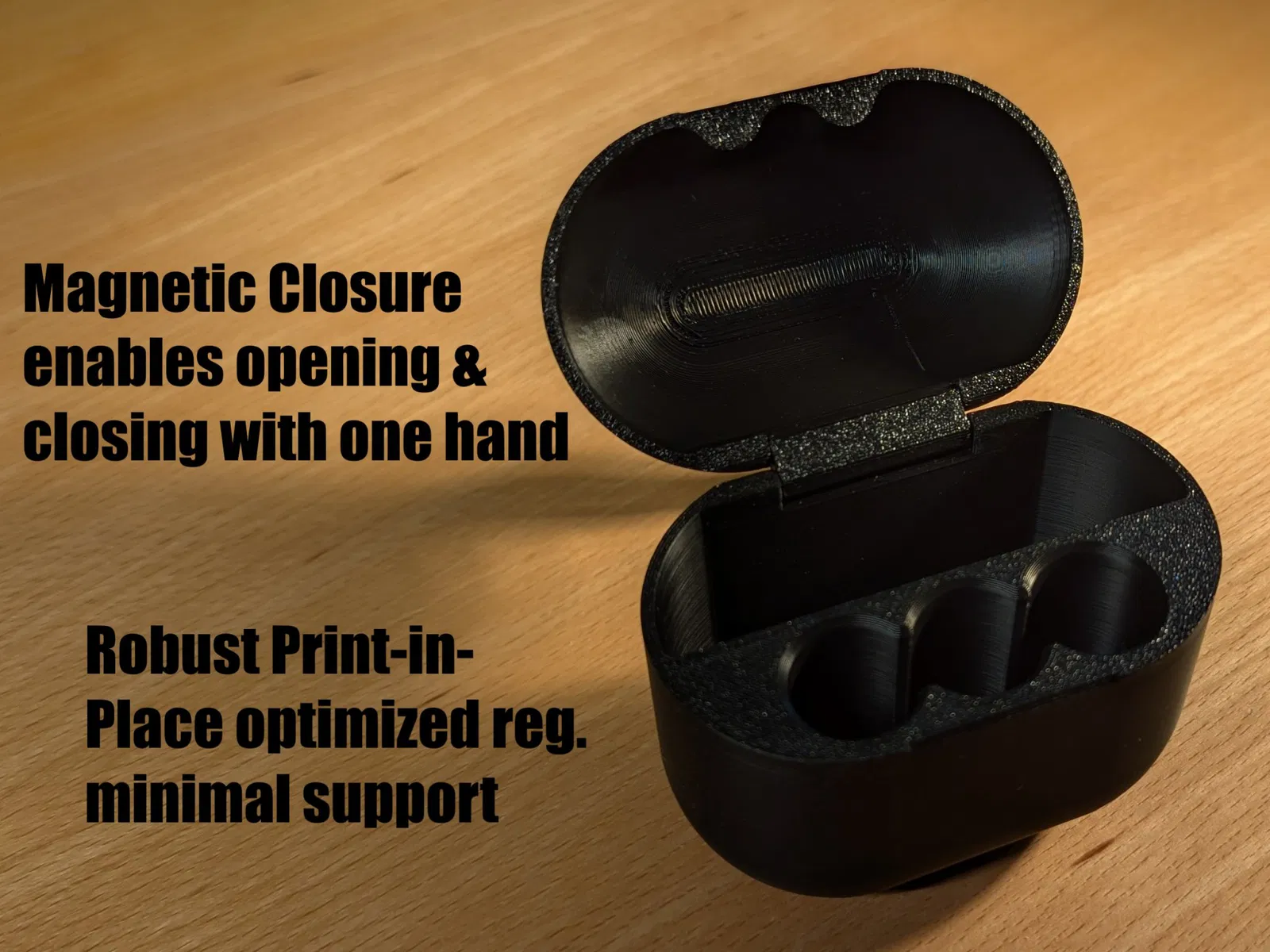 Các mẫu in mất khoảng 90-120 phút trên A1 của tôi. Các đường viền được tạo ra rất đẹp với các cài đặt được cung cấp. Vui lòng đảm bảo tạm dừng quá trình in của bạn vào đầu lớp 19 để lắp nam châm. Ngoài ra, hãy đảm bảo rằng nam châm hướng đúng chiều để chúng hút nhau khi đóng.