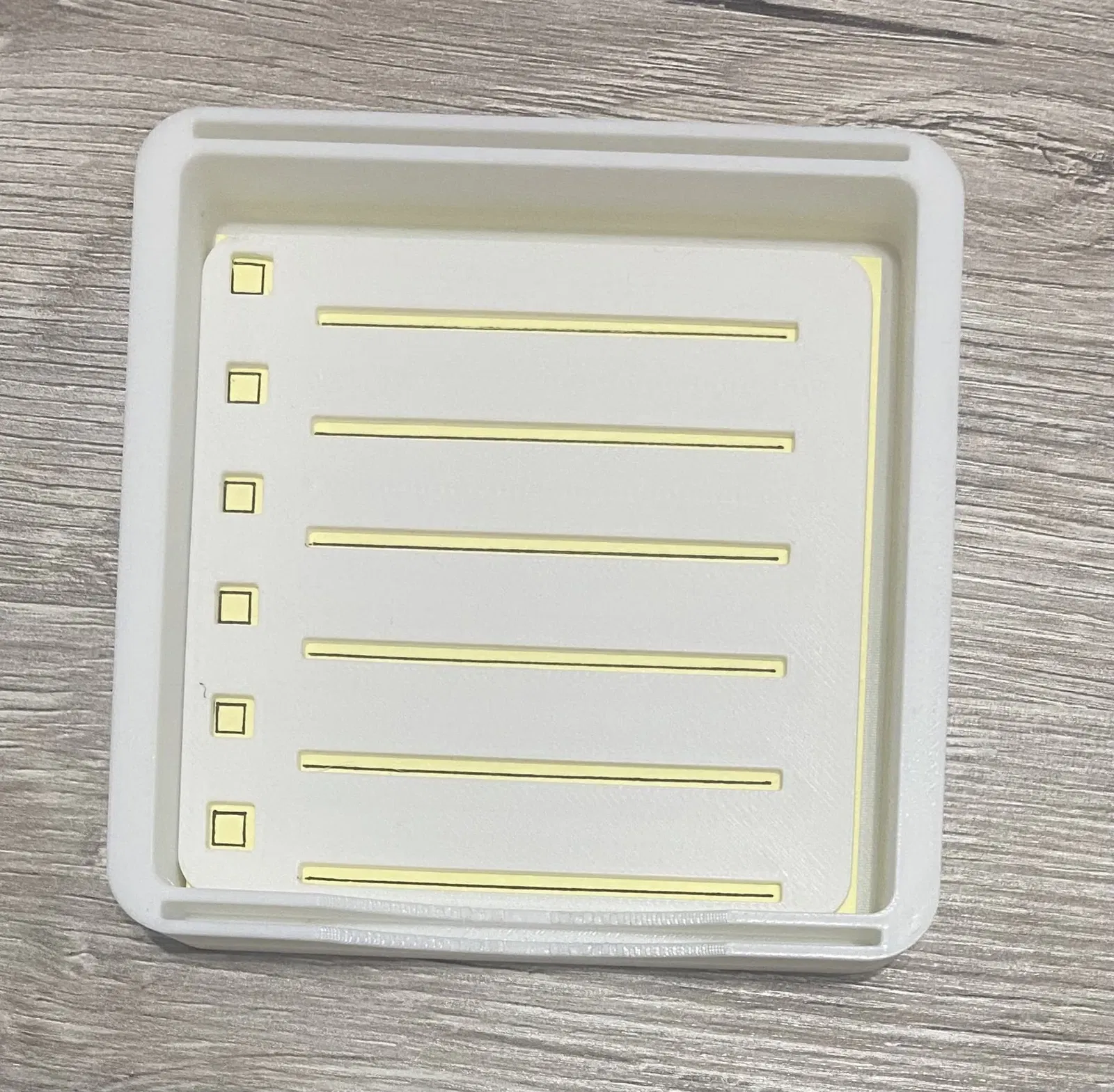 Mẫu thiết kế đơn giản này giúp bạn giữ giấy Post-it gọn gàng trên bàn làm việc. Sử dụng stencil đi kèm để sắp xếp các ghi chú của bạn một cách khoa học.