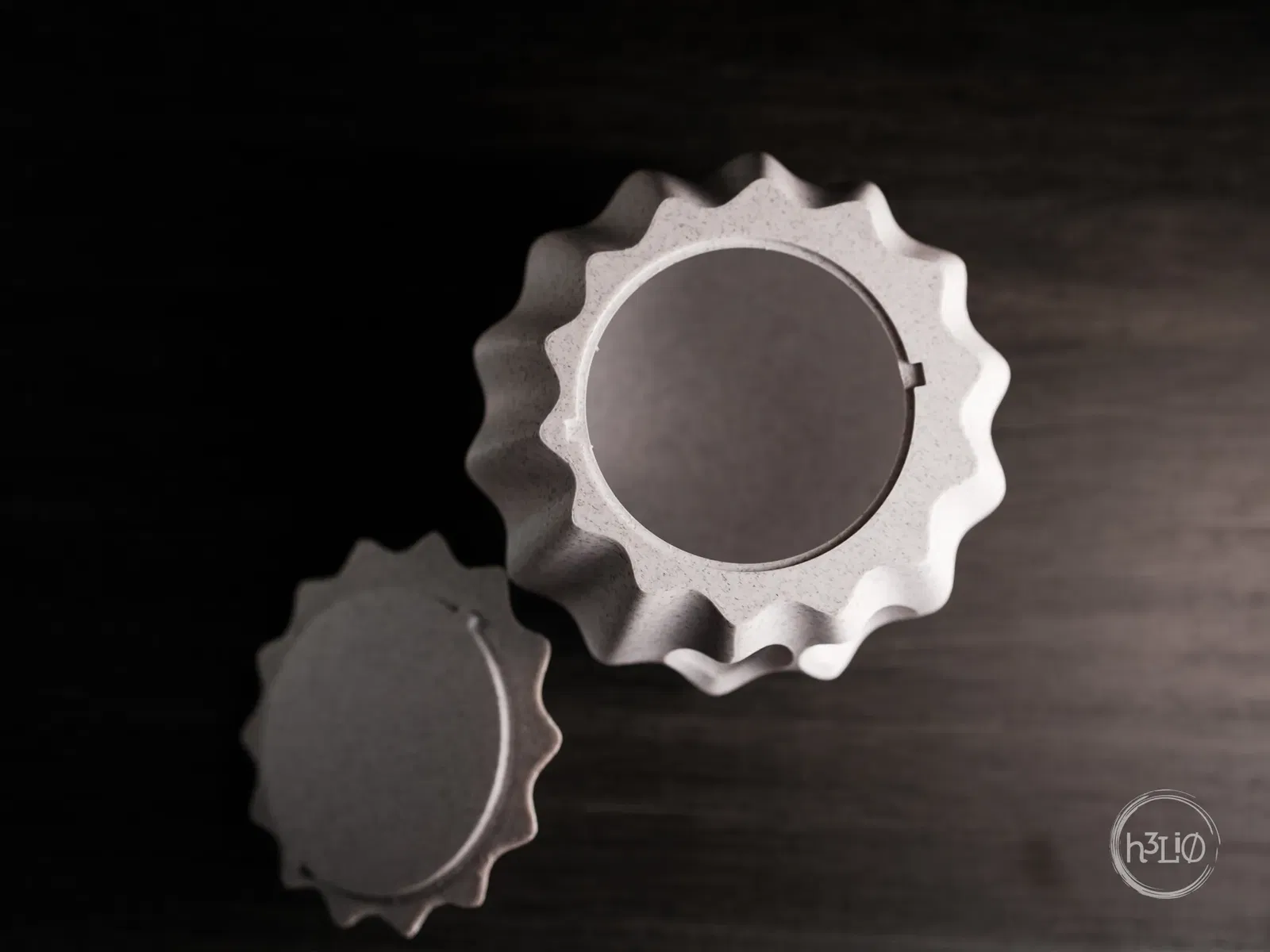 Hình ảnh cho thấy in bằng PLA màu trắng cẩm thạch, gạch cẩm thạch, đen và xanh mờ.