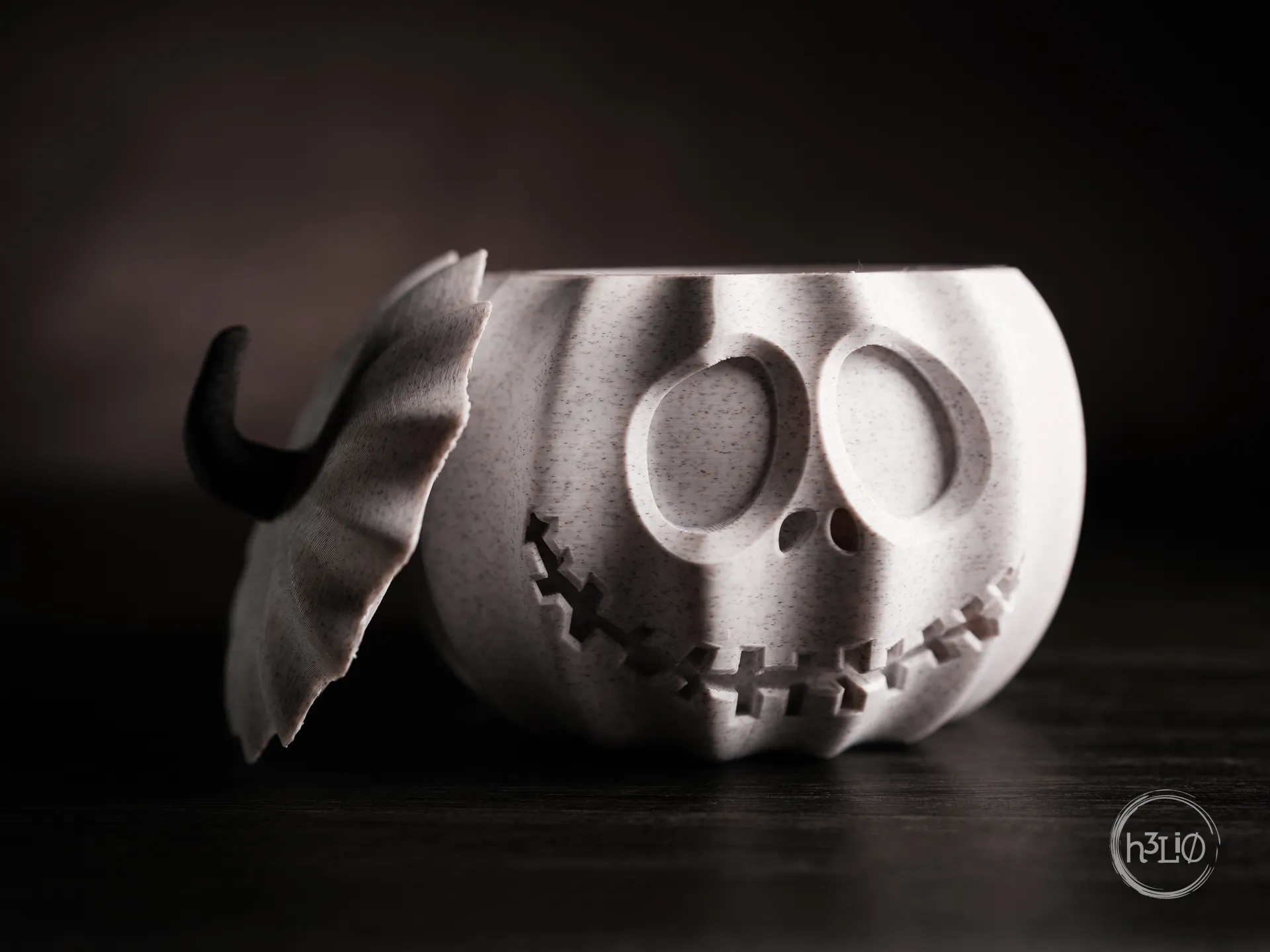 Cái hộp này dựa trên mẫu jack o'planter của mình, có nắp và phần thân vặn vào được.