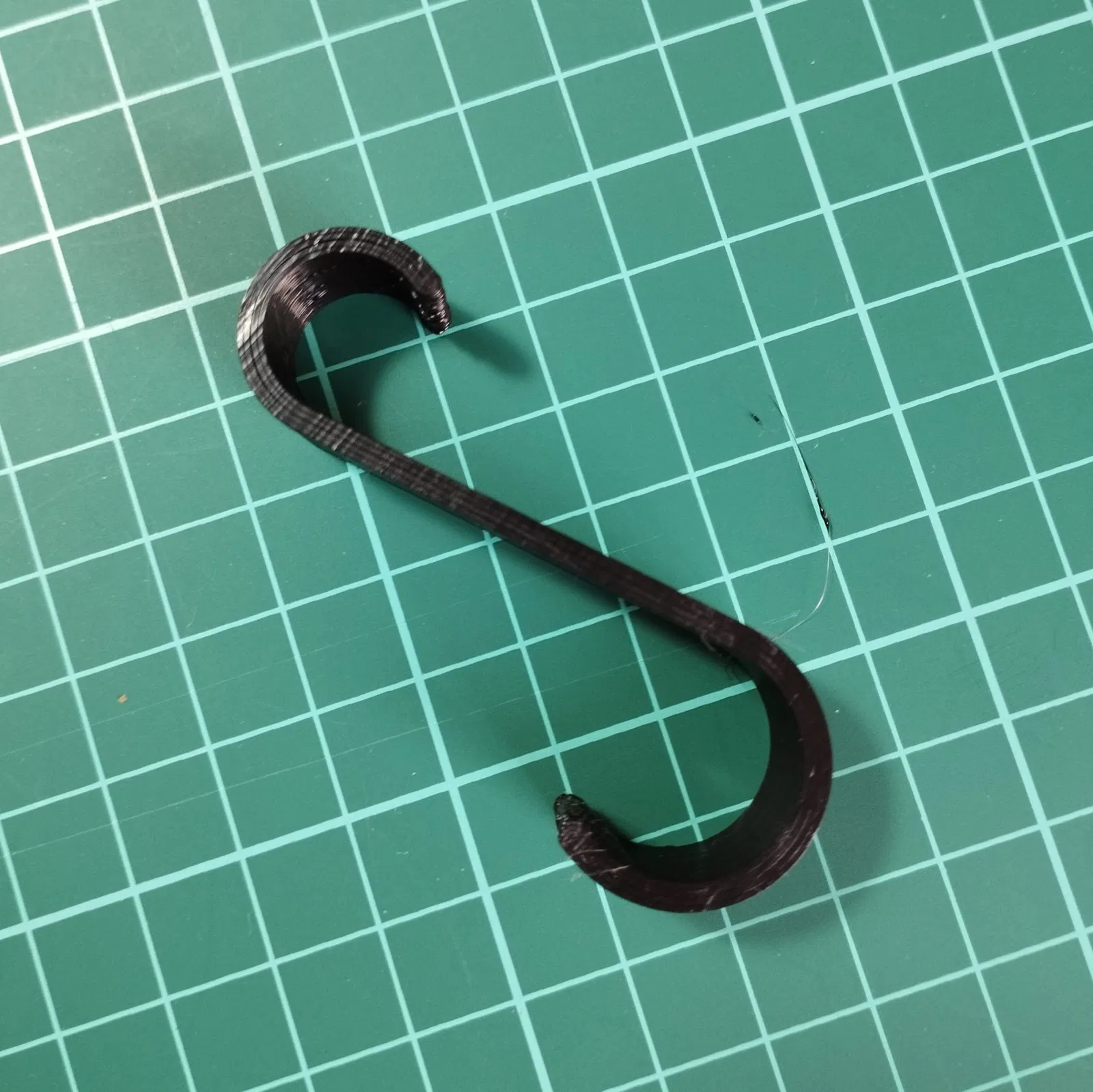 Chiếc móc treo chữ S này rất dễ sử dụng, bạn có thể bẻ cong nó bằng cách hơ nóng phần giữa cho đến khi mềm. File đi kèm vừa với thanh treo dày 13mm và có cả file f3d để bạn tùy chỉnh theo ý thích.