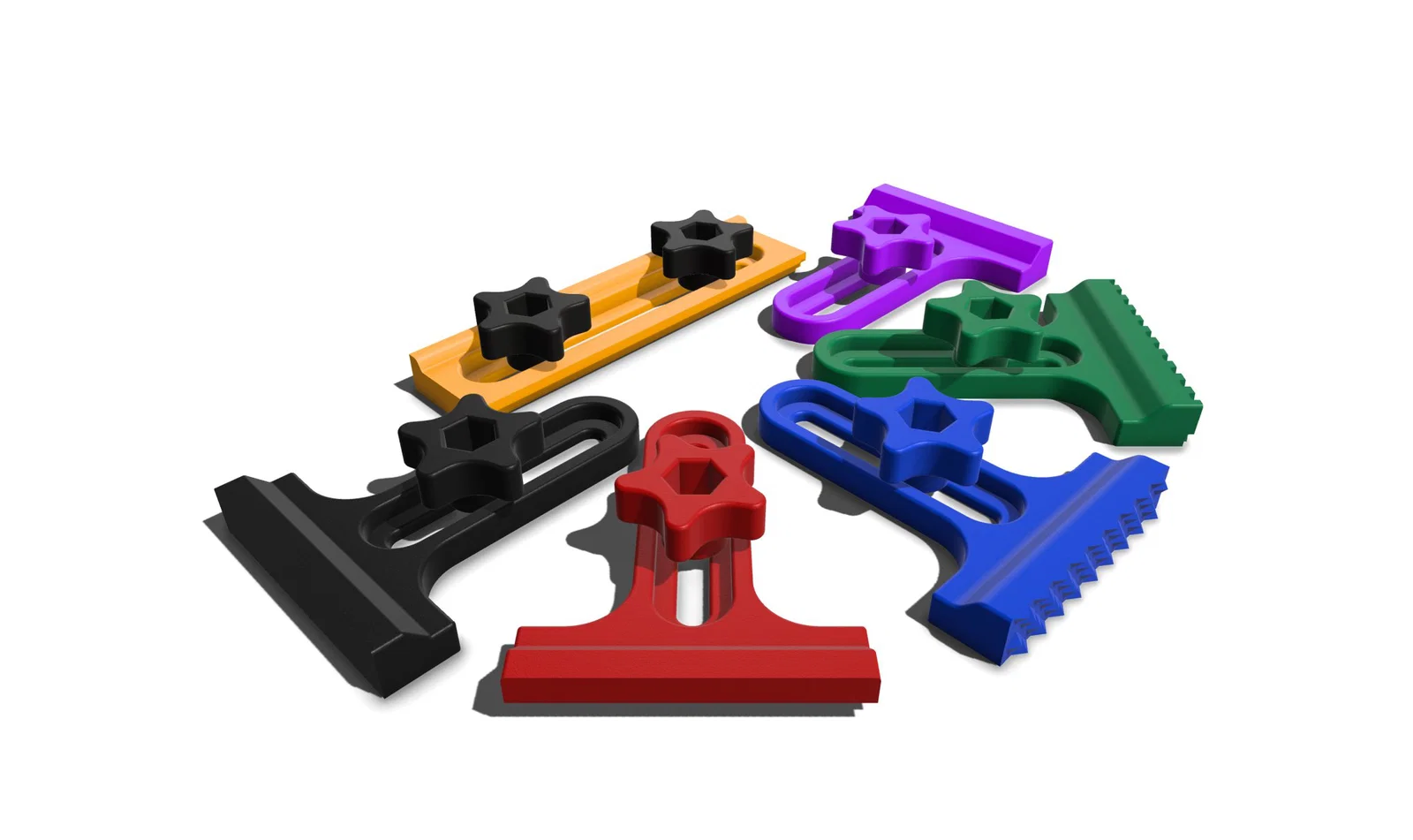 Kẹp hông cơ bản để giữ vật liệu trên bàn CNC, sử dụng núm vặn hình sao với bu lông lục giác 1/4 inch hoặc 6mm.