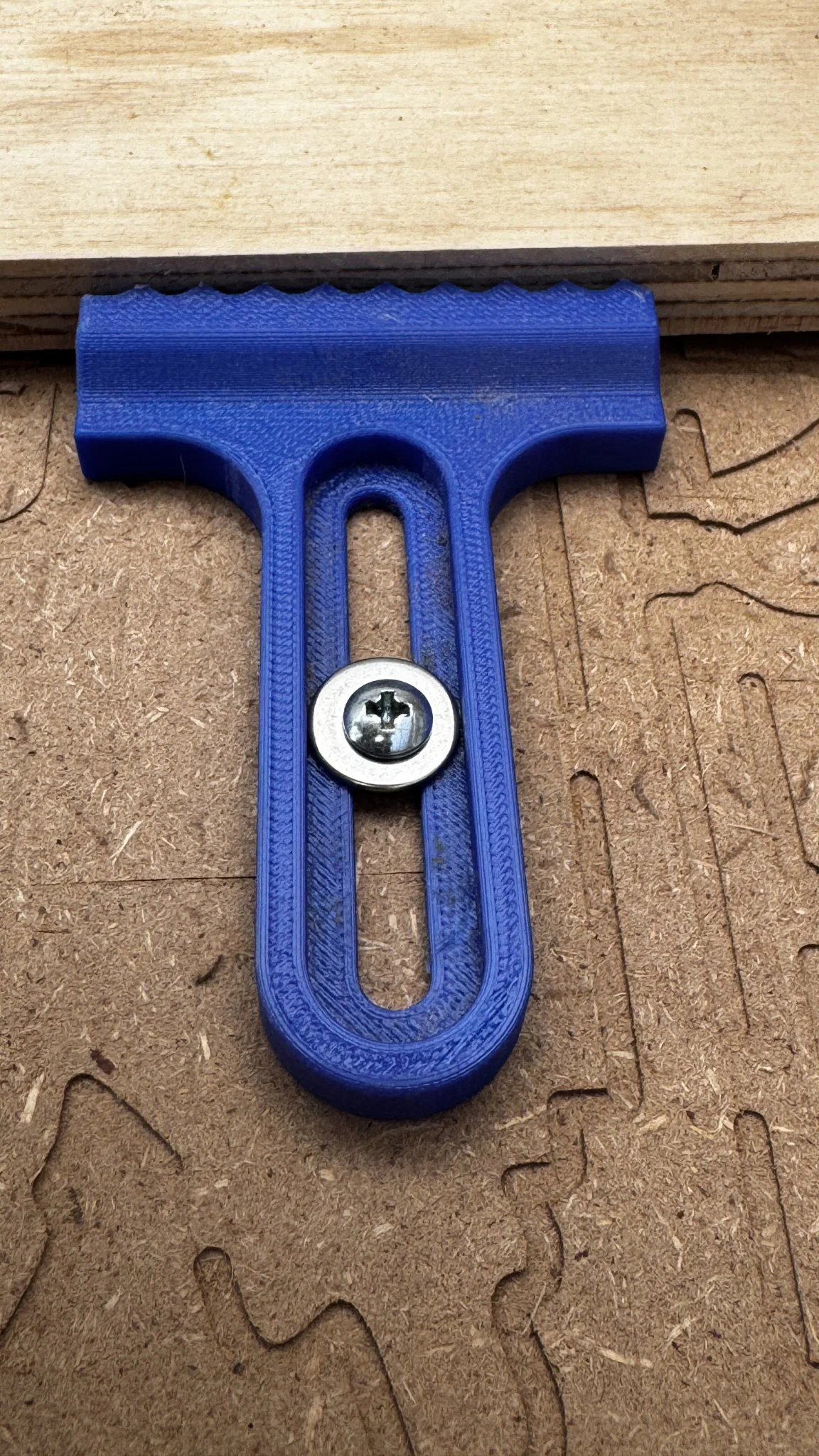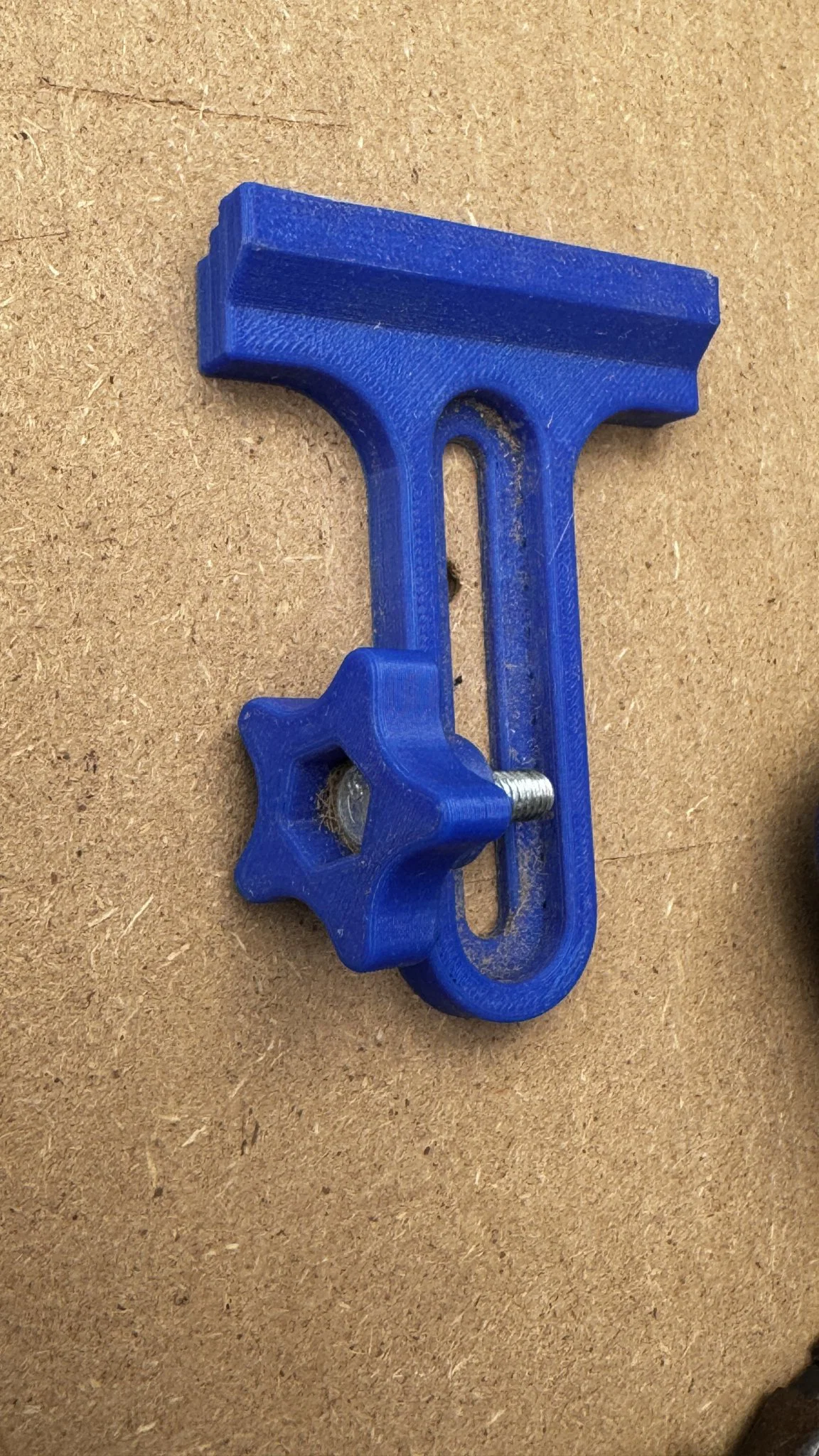 Đây là thiết kế kẹp hông đầu tiên cho bàn CNC, sử dụng núm vặn hình sao và bu lông lục giác. Bản cập nhật mới đã bổ sung phần gồ ghề, bậc cho các loại vật liệu dày khác nhau, đảm bảo sự chắc chắn và ổn định khi gia công.