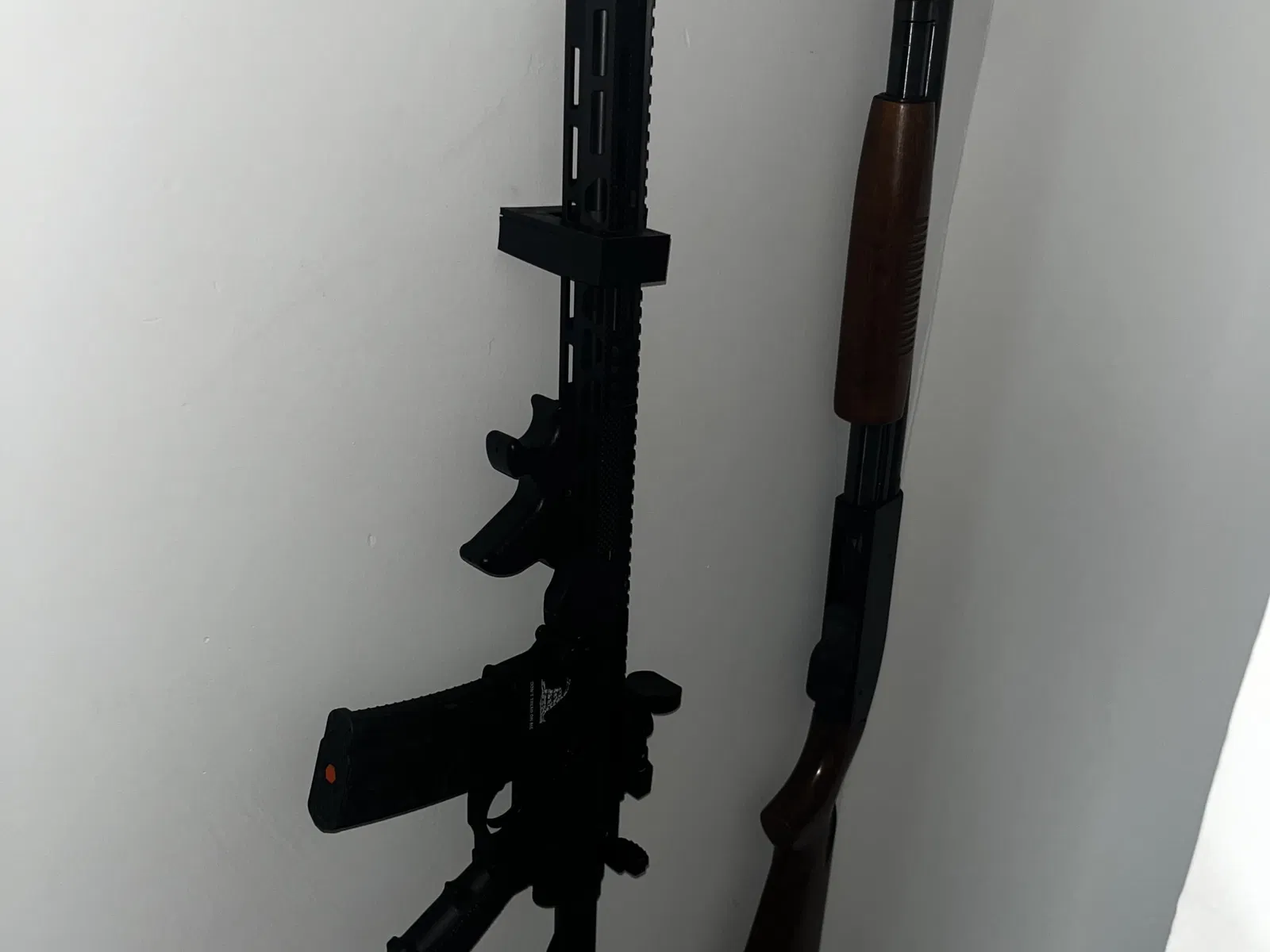 Cá nhân tôi đã treo các loại súng trường và súng săn có độ dài độc đáo khác nhau mà không gặp vấn đề gì. Tôi đã in những thứ này bằng PLA, ASA, PETG và PC - tất cả các kết quả với ít nhất 15% gyroid đều tuyệt vời.