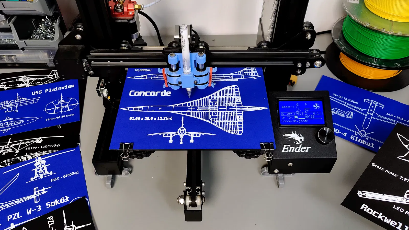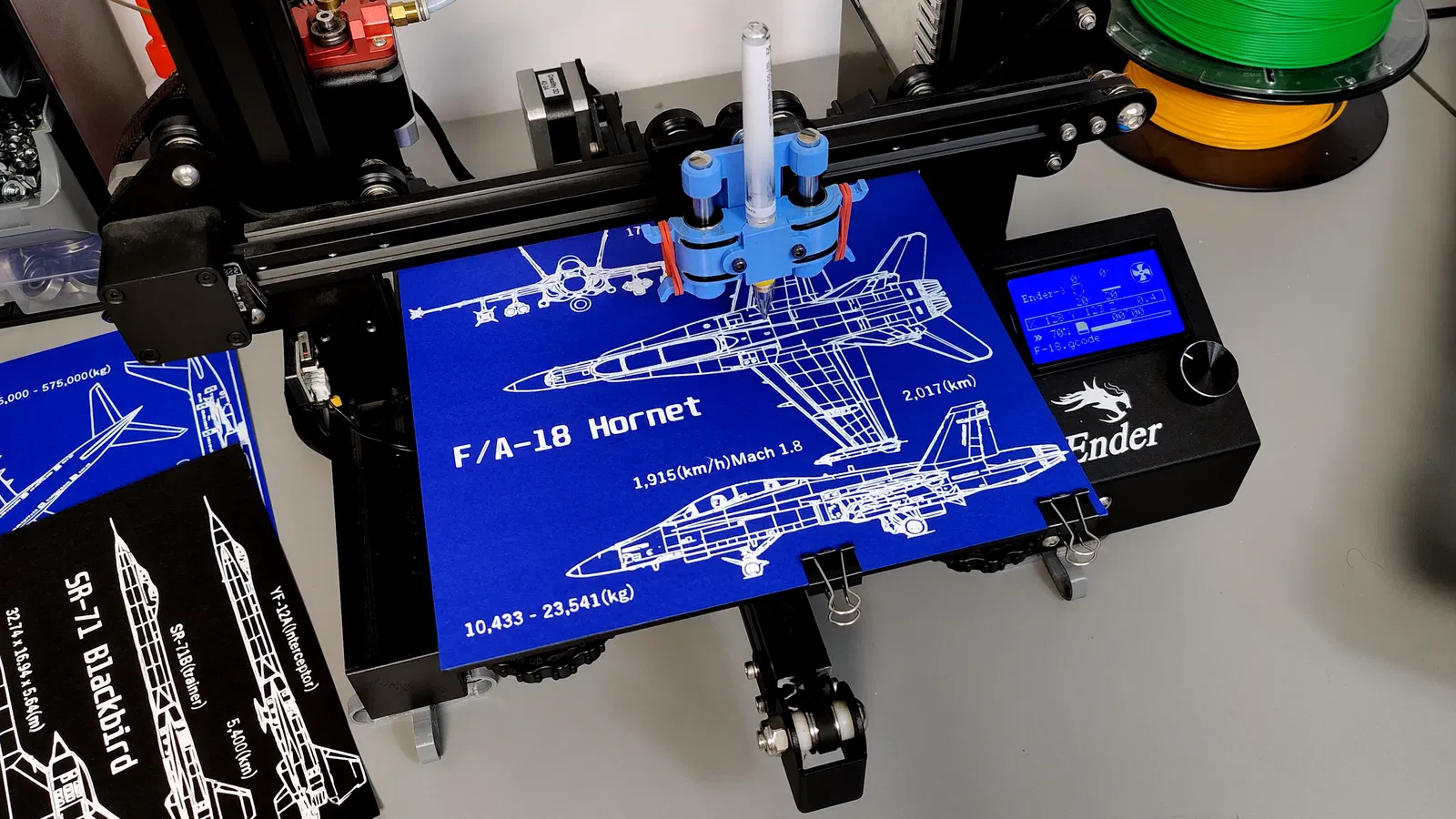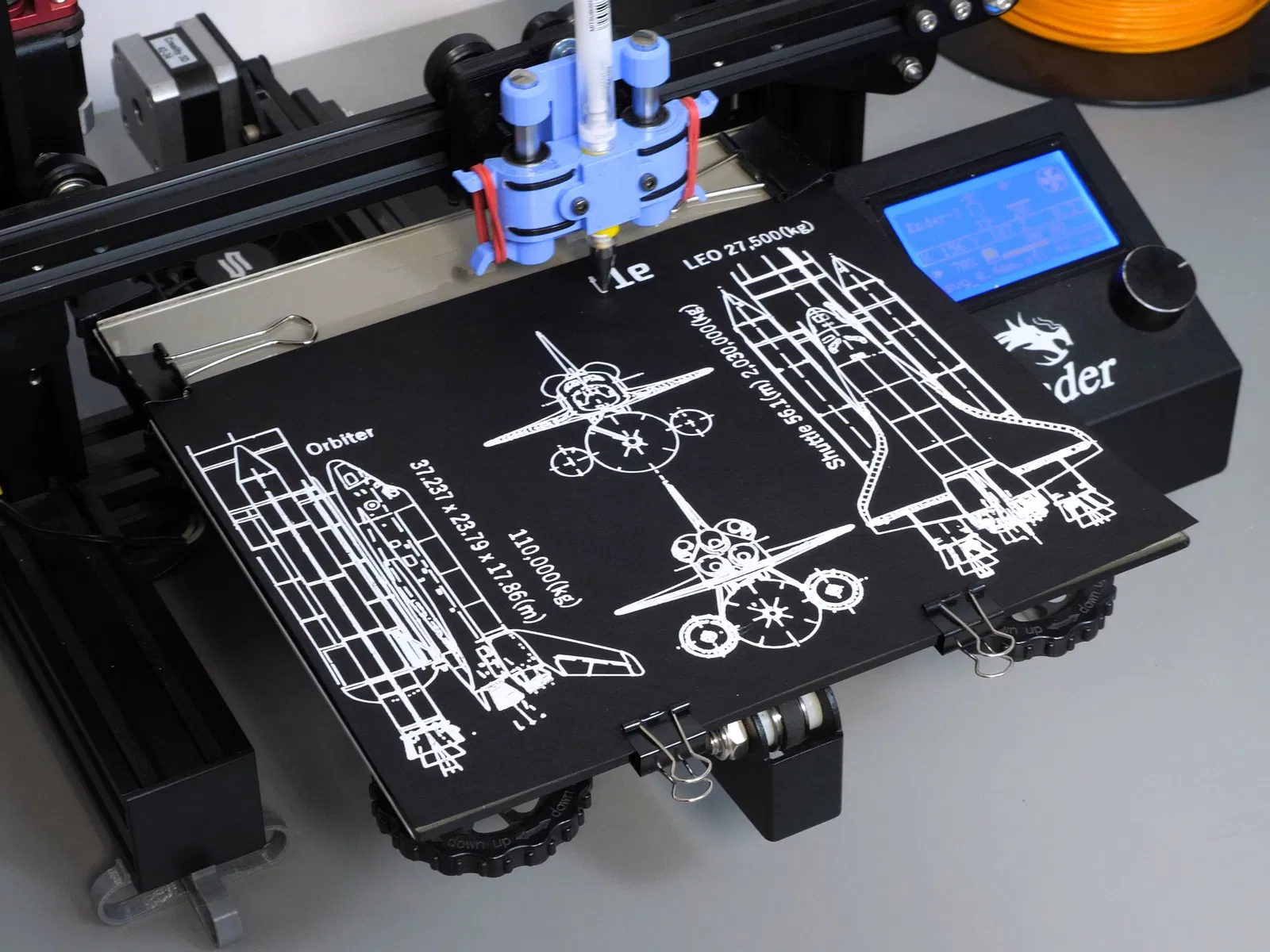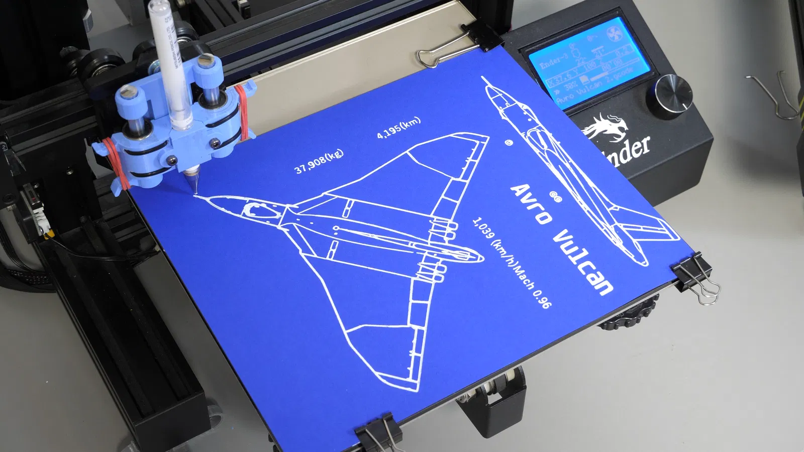 Tôi có ý tưởng làm một số bản vẽ và đóng khung chúng trên tường của mình, nhưng máy in văn phòng thông thường không in được màu trắng nên cần một giải pháp không chính thống. Tôi đã thiết kế một ngàm kẹp bút cho máy in của mình, mua một số bút mực trắng, sau đó chuyển đổi các bản vẽ có sẵn trên mạng thành STL để có thể in được. Tôi không biết tại sao mình lại tạo ra nhiều bản vẽ như vậy. Ban đầu tôi chỉ lên kế hoạch làm 10 bản, nhưng tôi lại cực kỳ yêu thích mọi thứ liên quan đến máy bay và tàu vũ trụ nên đã hơi quá tay. Nhưng giờ đây bạn có thể tự in những bản vẽ này và chúng thực sự trông rất đẹp trên tường. Nếu bạn thích một cỗ máy cụ thể nào đó không có ở đây, bạn có thể nhấn thích và viết bình luận, để tôi có thể tạo thêm thiết kế.