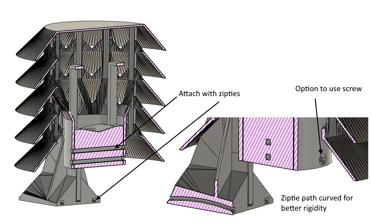 In không cần hỗ trợ, có lỗ 45mm cho cảm biến. Gắn bằng dây rút - không cần phần cứng. Bao gồm tệp Fusion 360. Tấm chắn bức xạ này được thiết kế để sử dụng với nhiệt kế Xiaomi Mijia, bảo vệ nó khỏi tác động của ánh nắng mặt trời và nhiệt độ khắc nghiệt.
