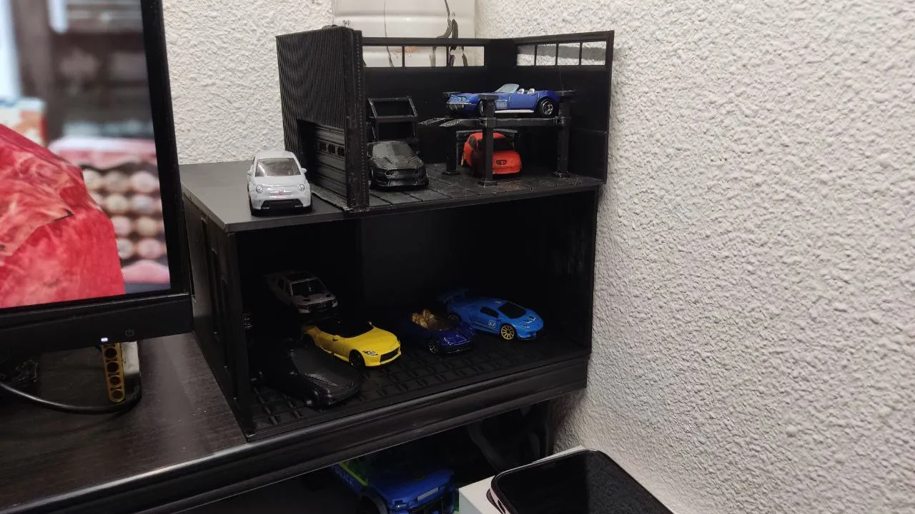 Ga-ra có cửa sổ và các kệ để trưng bày xe mô hình tỉ lệ 1:64. Đây là sản phẩm đầu tay của người làm, hứa hẹn sẽ có nhiều cải tiến về chất lượng trong tương lai.