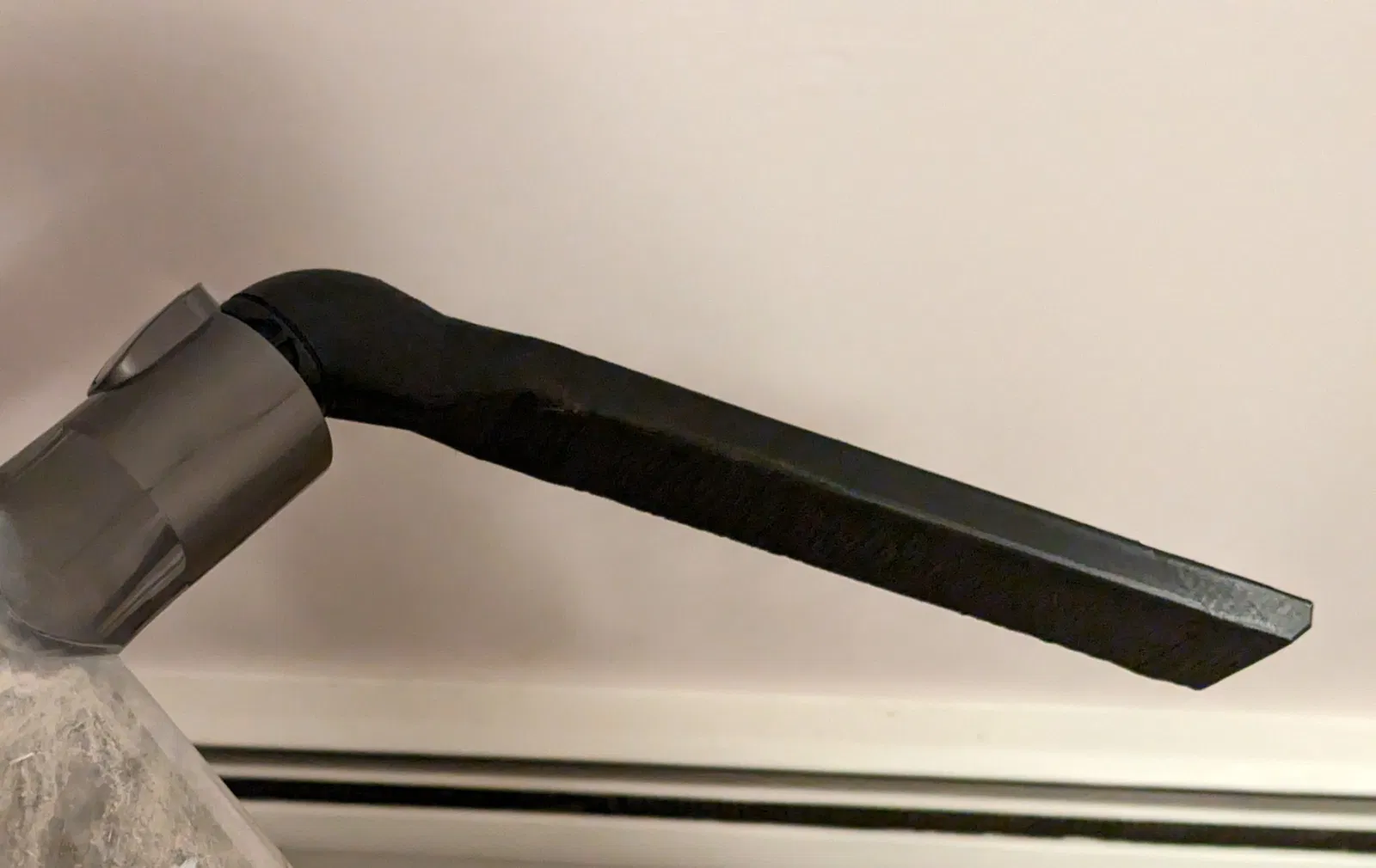 Tui thấy cái thiết kế béc hút đồ giặt của Zswickliffe cho máy hút bụi Dyson cưng lắm. Tui cần cái đế khác, nên tui xài cái file OpenSCAD từ mẫu ống nối Dyson V6 của Max để làm ra cái tiệm cận tương đối. Thiết kế của Zswickliffe vẫn đẹp/gọn hơn, mà tui muốn tận dụng mấy cái có sẵn.