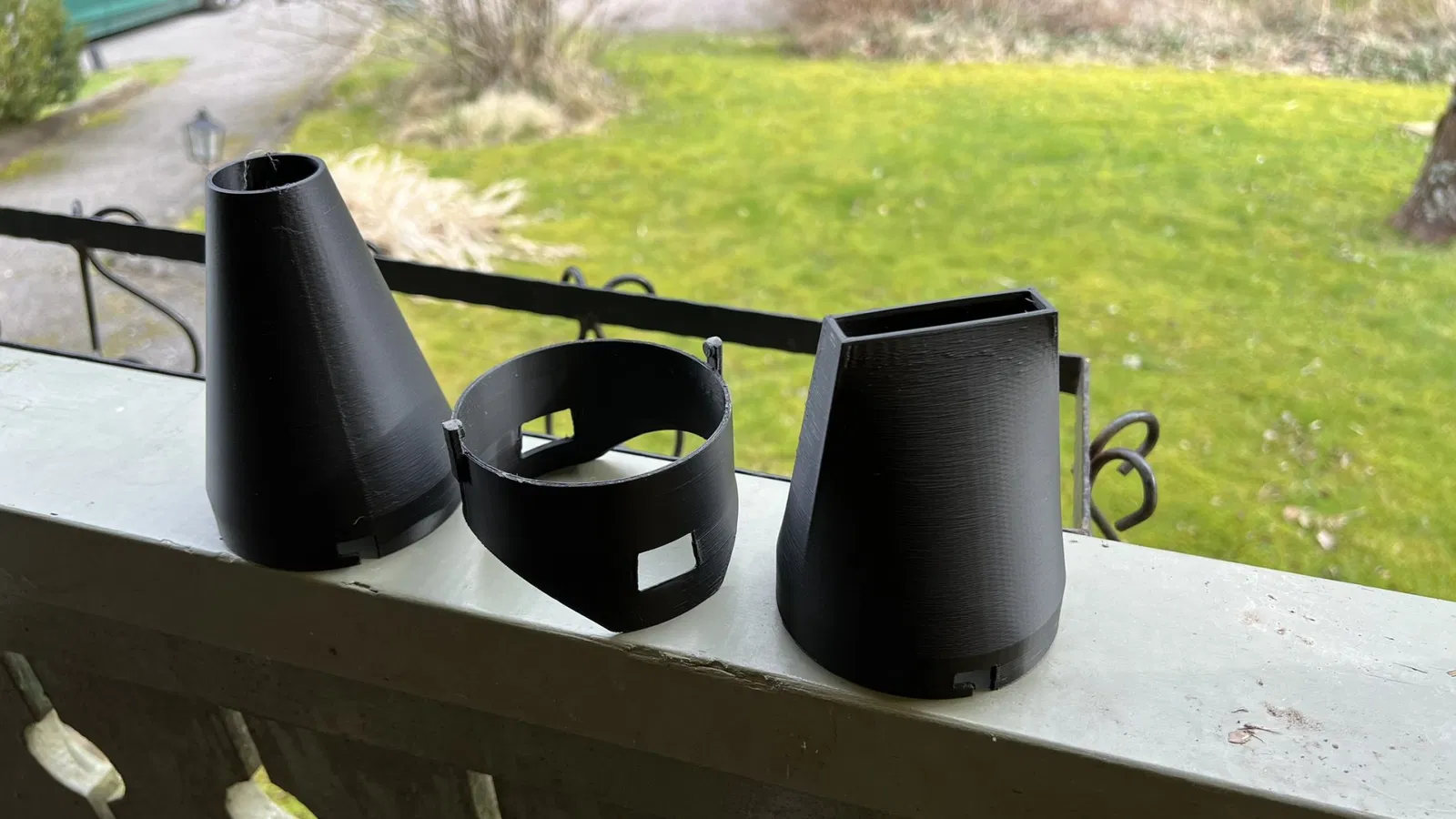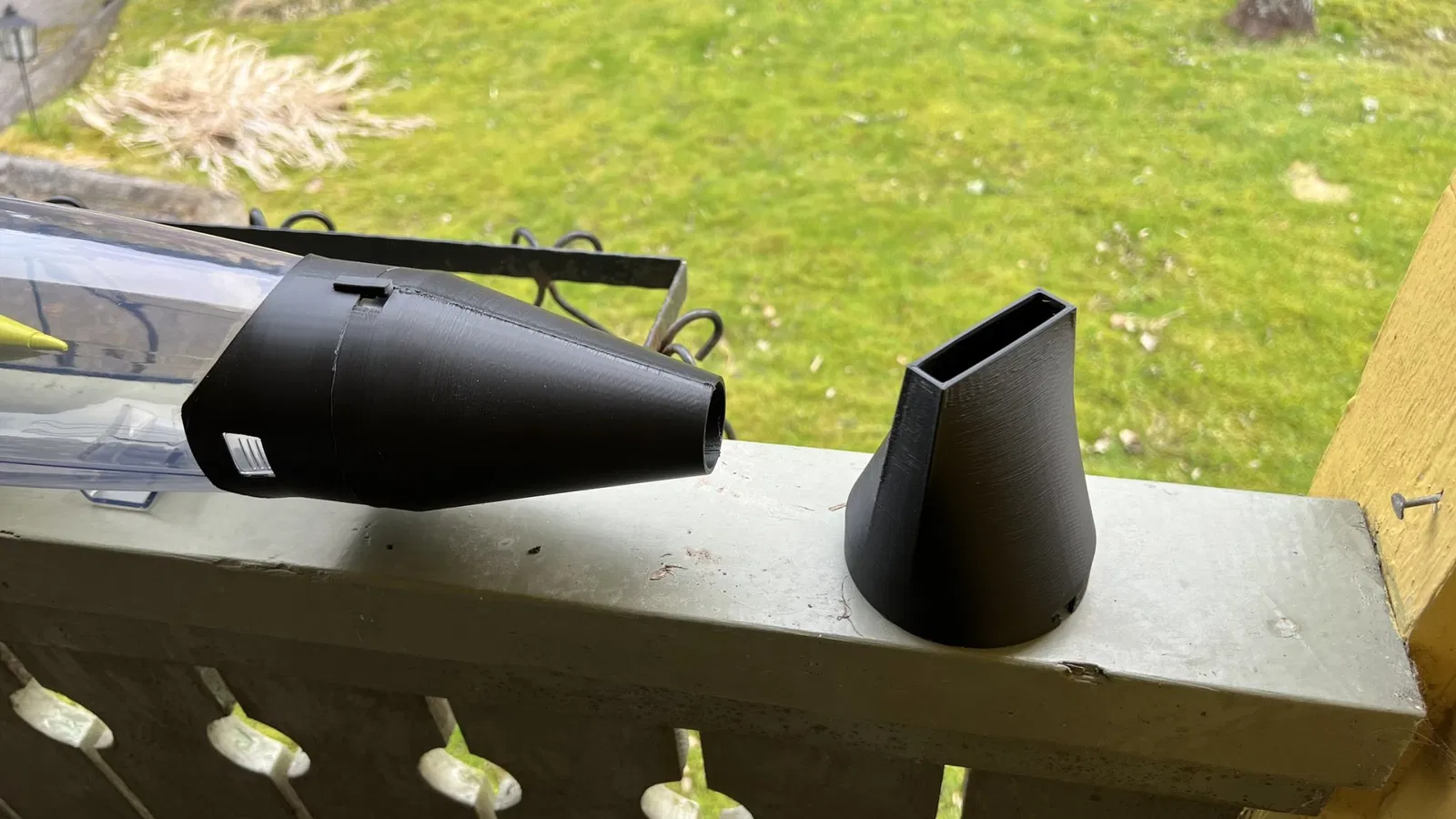 Bộ chuyển đổi (in kèm hỗ trợ) với các đầu phun có thể thay thế (in không hỗ trợ).