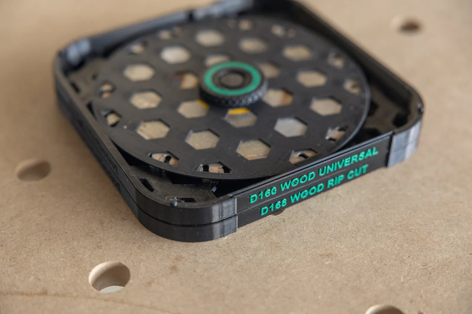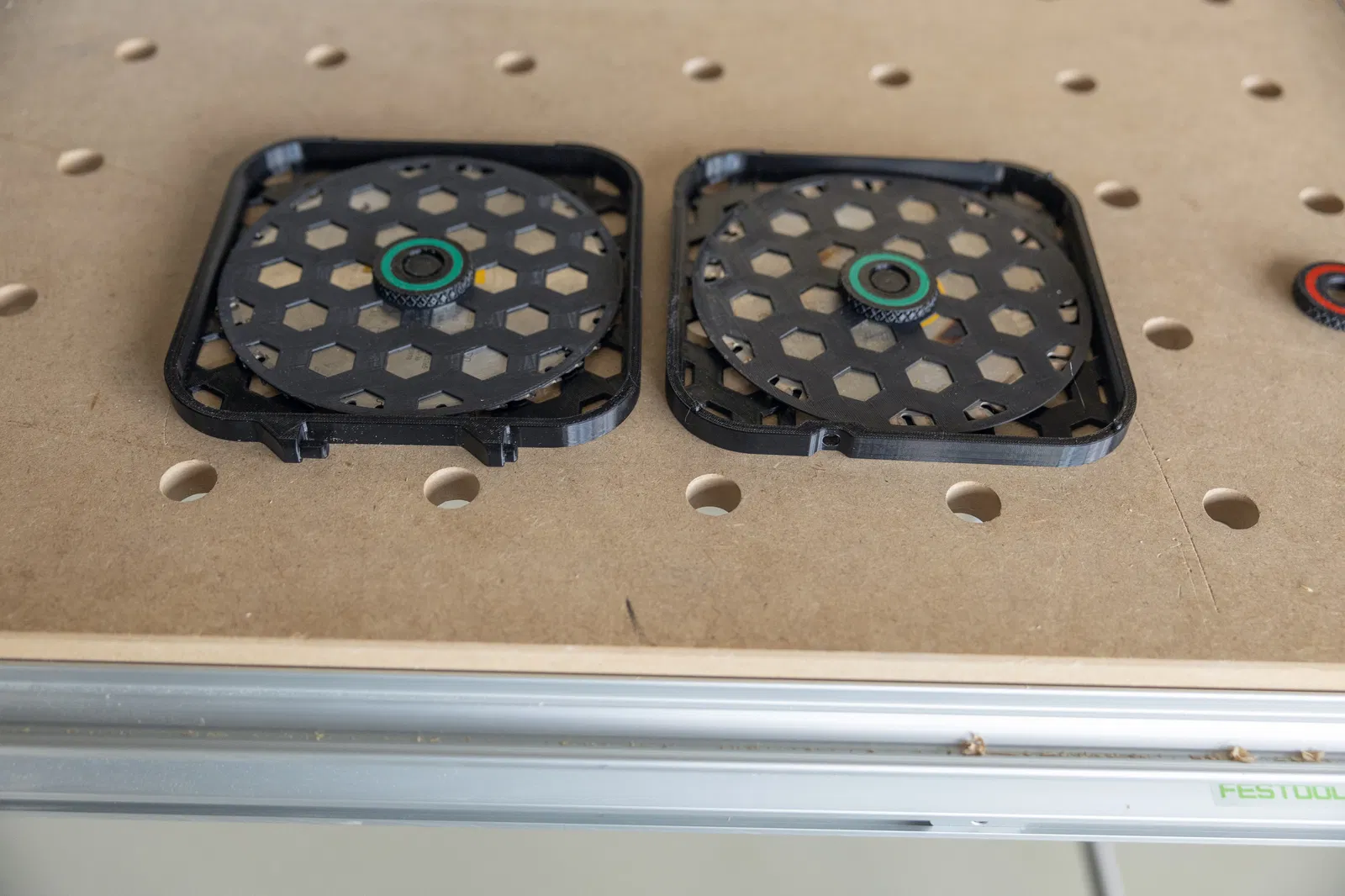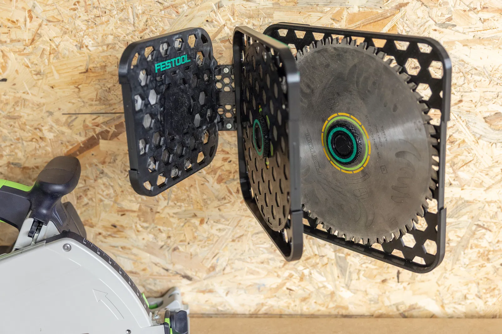 Giá đỡ lưỡi cưa Festool – đơn giản hóa việc quản lý dụng cụ của bạn Bạn đang cất giữ lưỡi cưa của mình ở đâu? Tự in giá đỡ lưỡi cưa Festool và làm cho công việc hàng ngày của bạn trở nên dễ dàng và hiệu quả hơn. Chưa có lưỡi cưa Festool? Nhấn vào đây Làm sao để biết lưỡi cưa nào vẫn còn sắc? Nhờ có vít tích hợp với mặt xanh và mặt đỏ**, bạn có thể dễ dàng đánh dấu lưỡi cưa của mình: