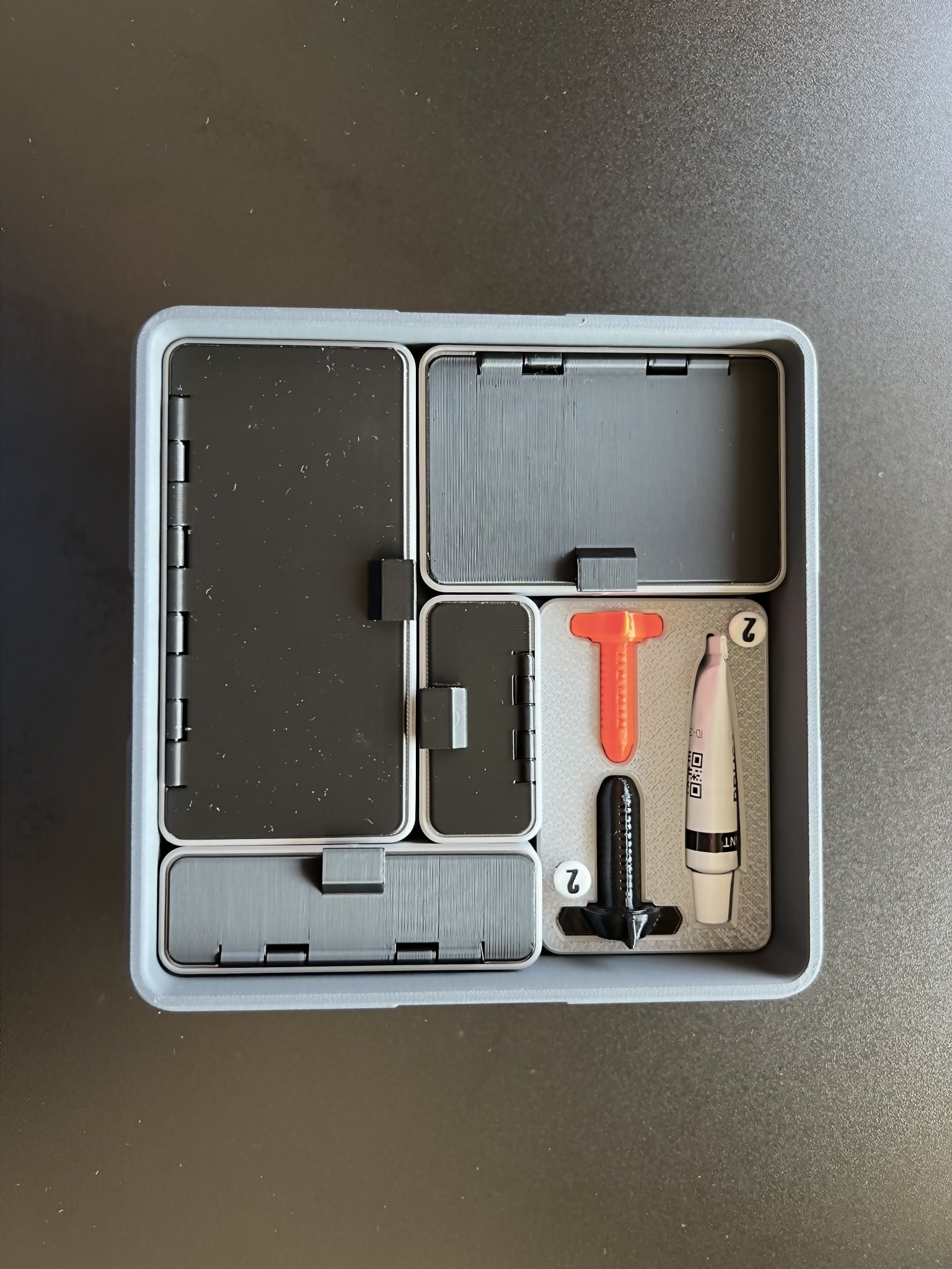 - còn nhiều hơn nữa sẽ đến sớm… ### In ấn - Nắp có bản lề là một sản phẩm in tại chỗ và hoạt động hoàn hảo, rất mượt mà, giữ nguyên vị trí khi in bằng PLA hoặc PETG thông thường (Tôi không khuyên bạn nên sử dụng PLA mờ cho thành phần này).