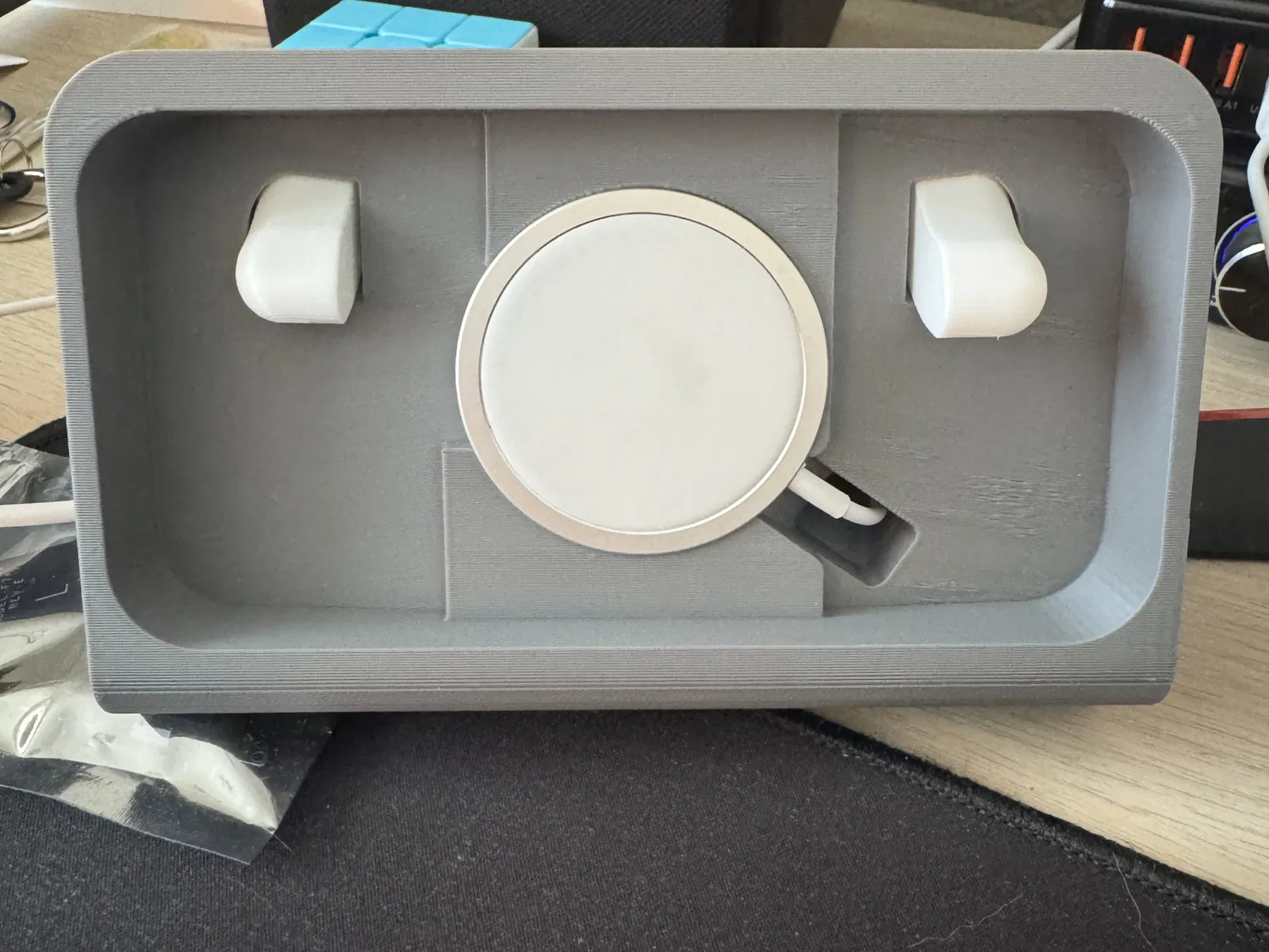 Một phiên bản remix của mô hình Every iPhone STL & Adjustable f3d File | ScottYu-Jan & OVERWERK bởi @Marlfox_1264389, nhưng lần này chỉ với phần sạc điện thoại. Cũng đã điều chỉnh độ dung sai của phần magsafe để có độ khít chặt, mở rộng lỗ đi qua dây, và làm dày độ sâu của lỗ cắt để phù hợp với một chiếc điện thoại dày hơn. Bạn có thể điều chỉnh các giá trị trong các tham số. Vui lòng tham khảo mô hình của họ để biết hướng dẫn cách chỉnh sửa tệp để phù hợp với kích thước điện thoại chính xác, họ đã làm một công việc tuyệt vời! Tôi chỉ không cần phần sạc airpods nên tôi đã cắt bỏ và chỉnh sửa tệp để phù hợp với iPhone 15 pro của tôi với một vỏ bên thứ ba. Tất cả tín dụng cho thiết kế gốc thuộc về ScottYu-Jan và OVERWERK, và chắc chắn phải ghi công cho @Marlfox_1264389 vì công việc tuyệt vời trong việc có được kích thước cho tất cả các iPhone!