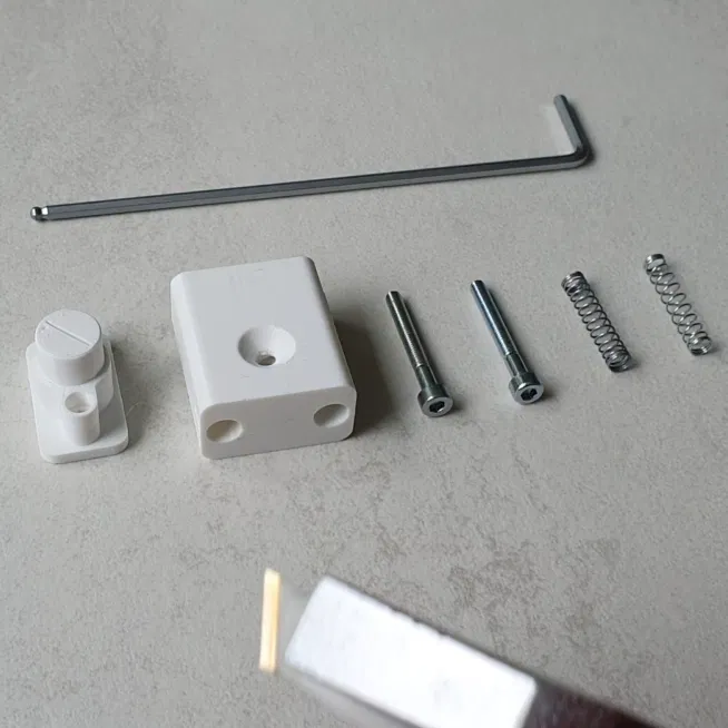 2 chiếc vít M3 x 25 mm - 2 chiếc lò xo bút bi (có lẽ dài 20 mm, đường kính 4 mm, vít M3 phải vừa bên trong) ### Hướng dẫn lắp ráp Xem hướng dẫn video tại đây. 1. In cả hai bộ phận.