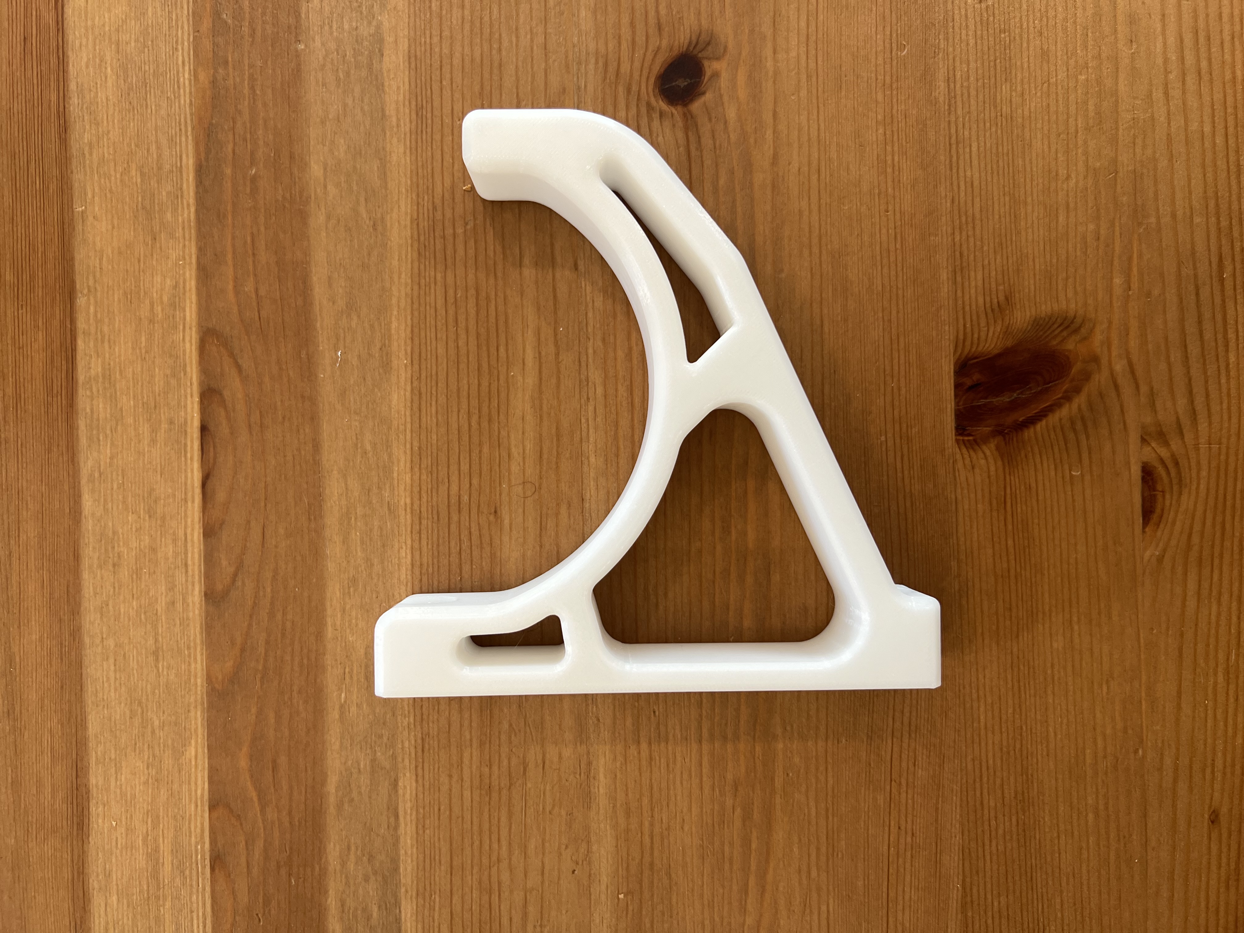 Sự thay đổi ở đây rất đơn giản, mặc dù hơi phản trực giác. Bằng cách đảo ngược một trong các thanh đỡ, khả năng chịu tải trọng tĩnh tổng thể của móc có thể được cải thiện đáng kể, như được chỉ ra bởi mô phỏng. Tôi có ý tưởng để thiết kế lại thanh đỡ này theo cách này từ việc xem xét một số ý tưởng thiết kế tạo sinh mà Fusion360 đã tạo ra khi tôi xem xét cách tốt nhất để chịu trọng lượng trên thiết kế móc này và nó liên tục hiển thị cho tôi hướng thanh đỡ ngược lại bên dưới đường cong của móc, như thế này:
