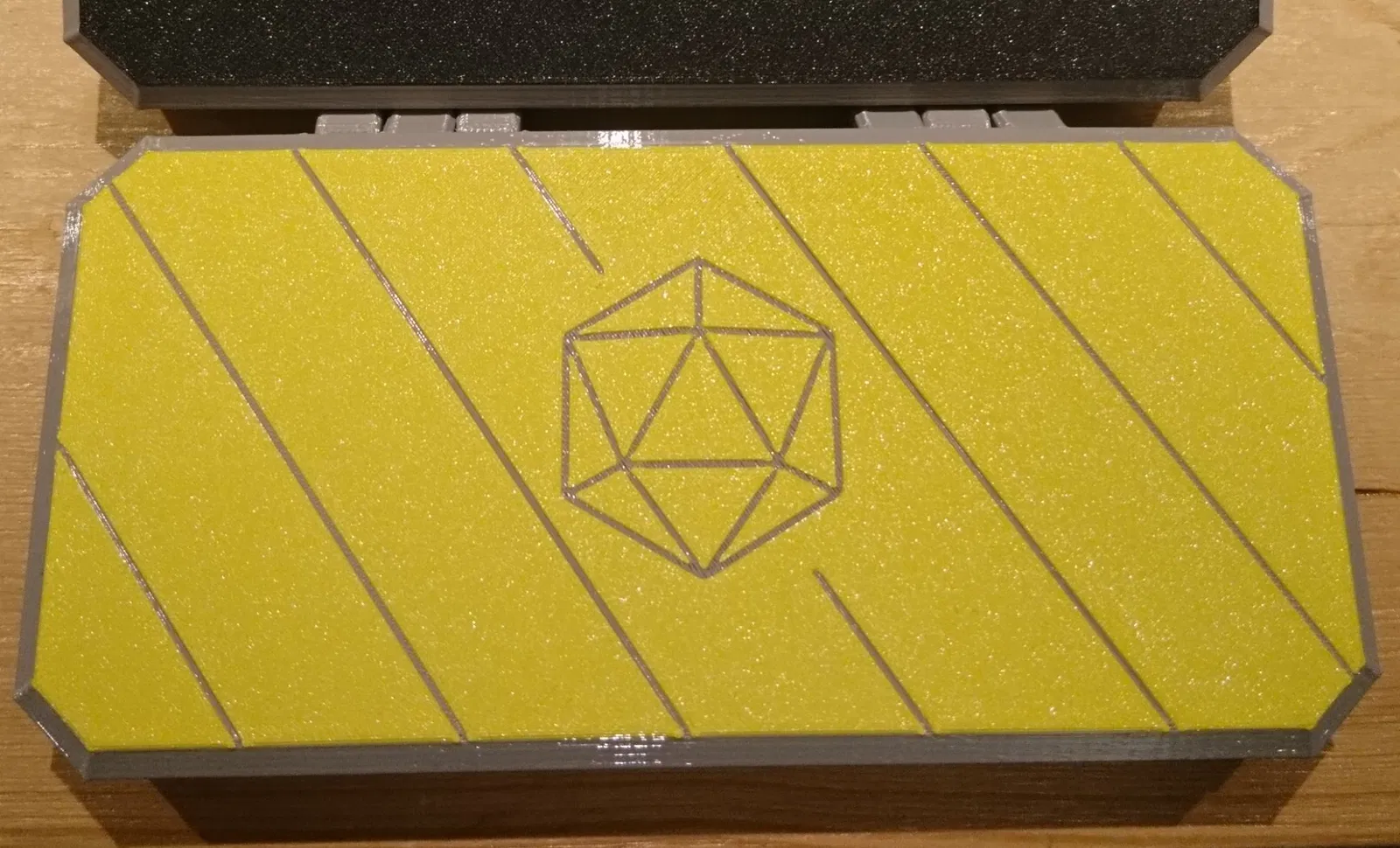 Hộp đựng xúc xắc mang đi hàng ngày (EDDC) "d20" với họa tiết d20, lý tưởng để giữ xúc xắc của bạn an toàn và ngăn nắp. Hộp nam châm mỏng này cho phép tùy chỉnh với vật liệu lót, và nắp có thể dùng làm khay đổ xúc xắc. Có sẵn các khay chèn có thể tháo rời để tổ chức xúc xắc. In bằng PETG hoặc PLA.