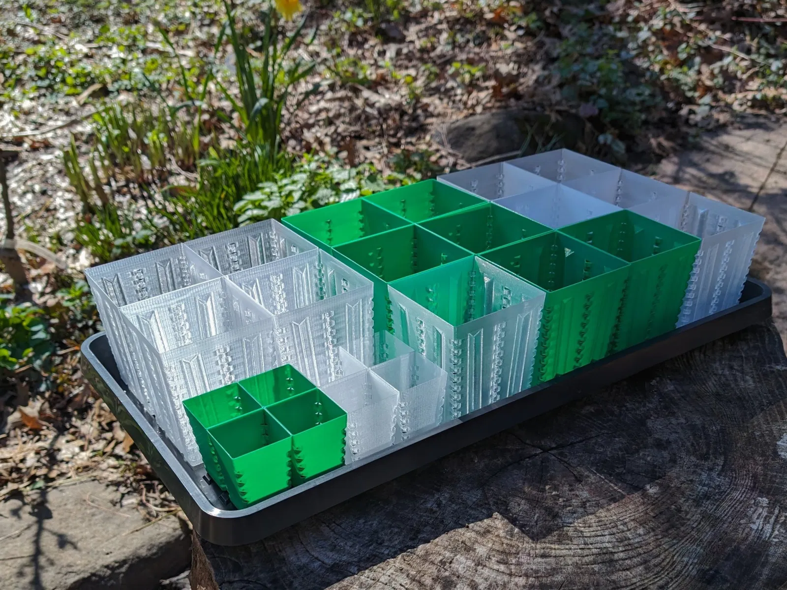 Tôi có một vài khay cắt tỉa không khí từ Neversink và chúng rất tuyệt! Tôi muốn thêm vài ô nữa và quyết định thiết kế một ô hai trên hai với các tính năng cắt tỉa không khí tích hợp vào mỗi ô.