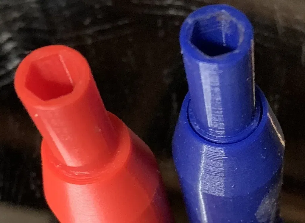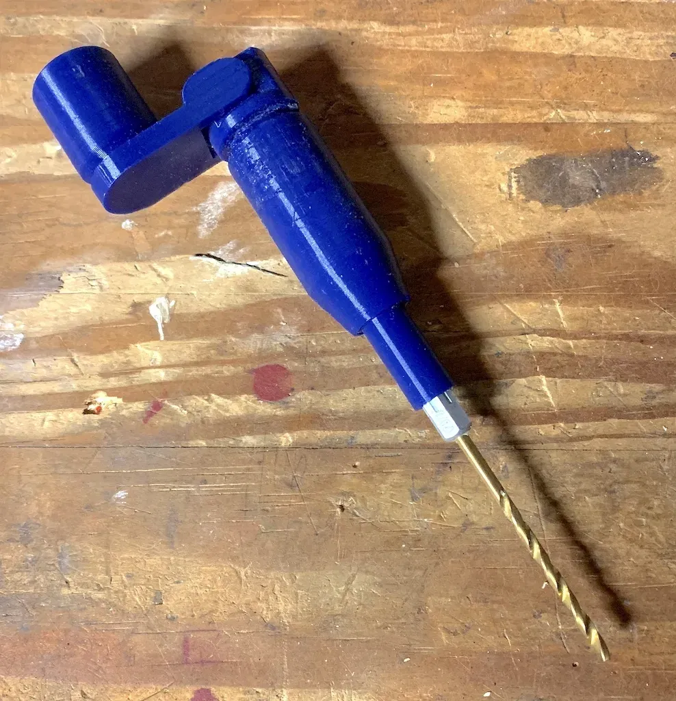 Nó có thể khó in đúng cách. Phần phía trên của hex cho mũi khoan có một lớp vỏ mà lẽ ra phải xoay tự do. Điều này cho phép bạn giữ khoan ổn định trong khi bạn xoay mũi khoan bằng tay cầm.