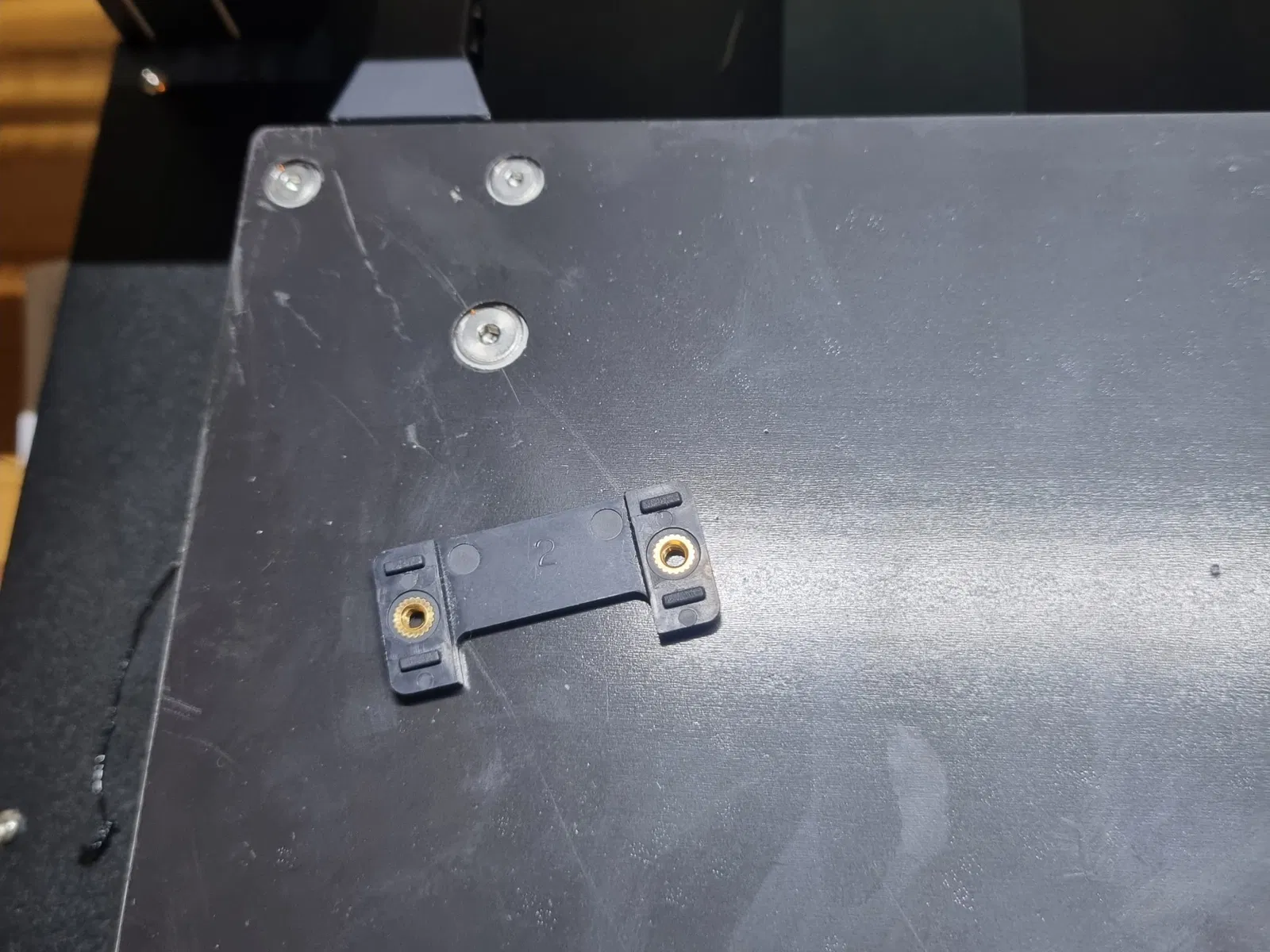 Tháo 2 bu lông m3 giữ chỗ căng ở vị trí (bạn có thể sử dụng cùng một bu lông để lắp lại nhưng sẽ tốt hơn nếu thay thế chúng bằng bu lông countersunk m3 15mm, như vậy bạn có thể lắp lại kẹp cũ dưới kẹp in và nó sẽ không bao giờ bị lỏng).