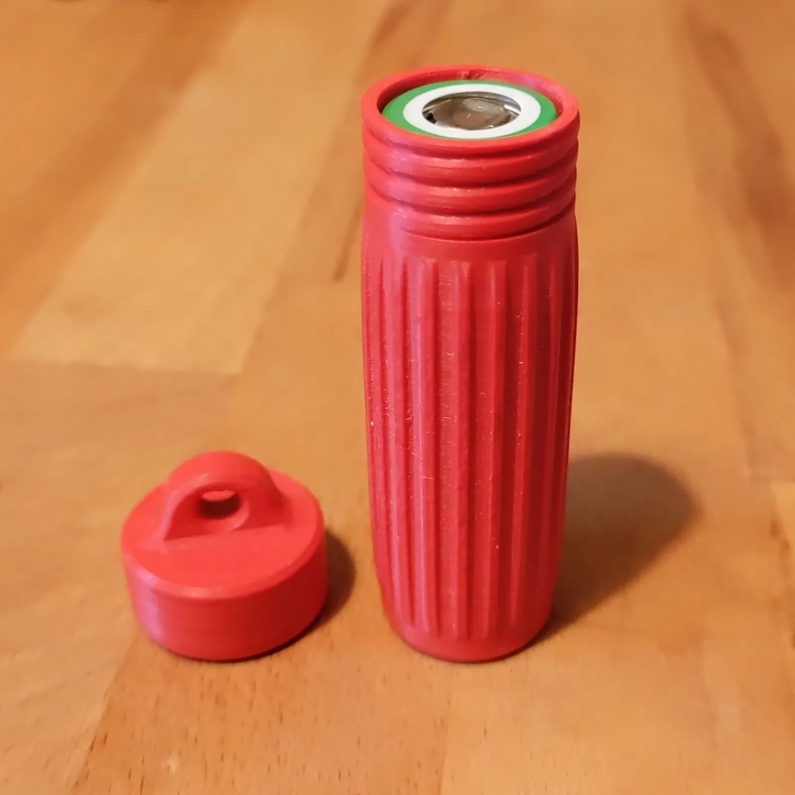 Phù hợp với các cell 18650 không được bảo vệ (và có thể một số cell được bảo vệ). Có đủ dung sai để được in với các vật liệu co lại như ASA hoặc ABS. Đóng chặt và không bị lăn khỏi bàn. Thân in mà không cần hỗ trợ. Nắp cần hỗ trợ cho mái, nhưng hãy chắc chắn không hỗ trợ các ren.