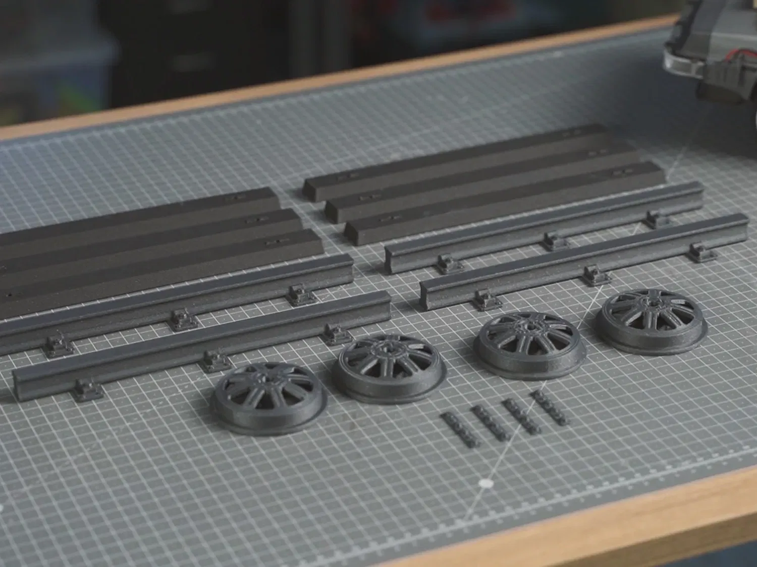 Mô hình bánh xe tàu cho DeLorean RC BTTF, phù hợp với mô hình 1/10. Yêu cầu M3 8mm, sử dụng filament PLA. Thiết kế dễ in và lắp ráp.