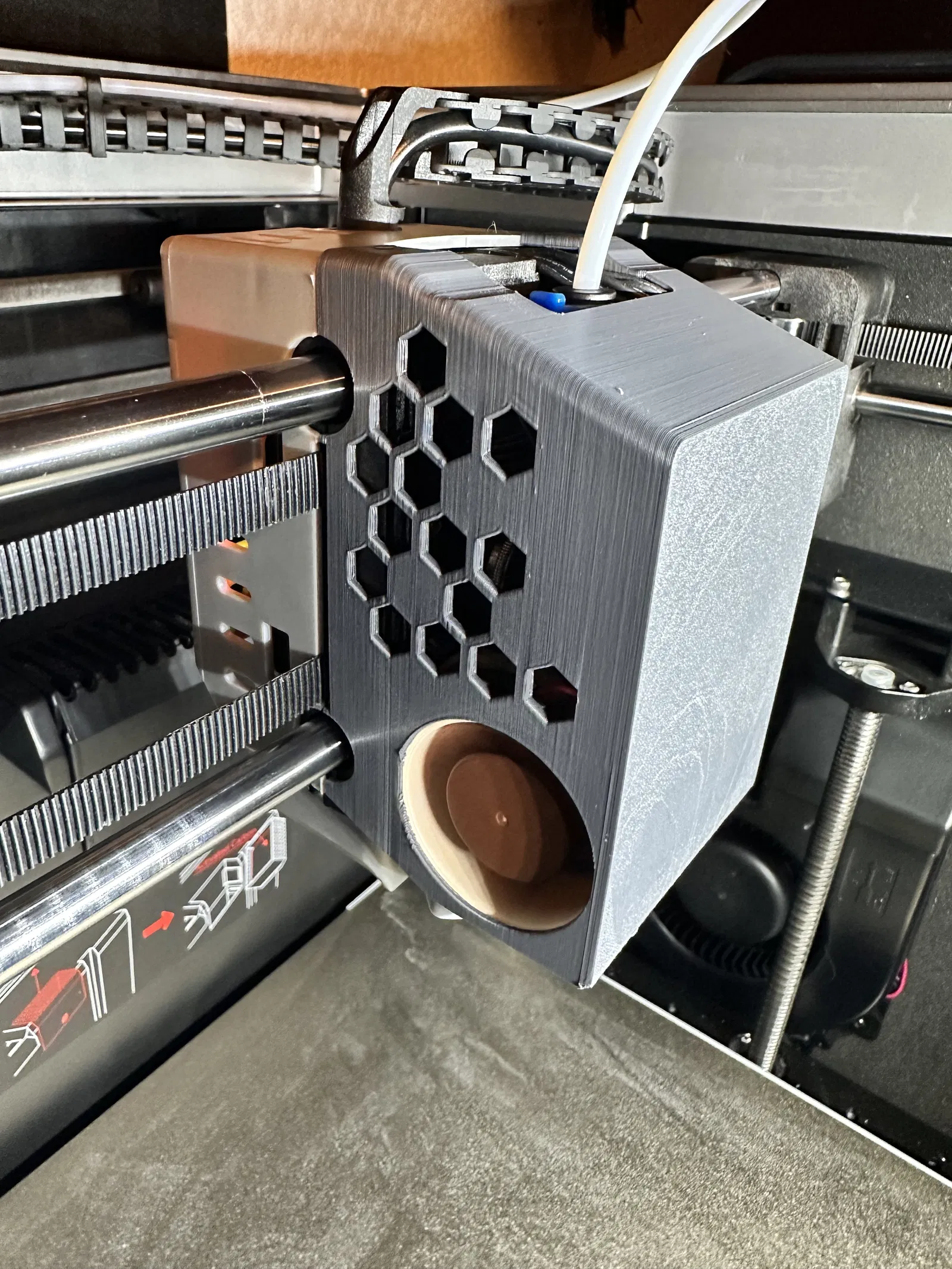 In bằng ASA hoặc ABS có lẽ là một lựa chọn tốt. ASA có thể giòn như PLA trên các bức tường mỏng, vì vậy hãy tăng nhiệt độ một chút để có độ bám dính lớp tốt. PETG cũng là một lựa chọn, nhưng hãy nhớ rằng đầu công cụ có thể nóng lên đến> 300C đối với một số vật liệu. PETG có thể (?) quá gần nhiệt độ của tản nhiệt, đặc biệt là trên thiết kế A4x20. Sử dụng hỗ trợ dạng cây (tự động hoạt động tốt) để in bằng slicer Qidi Studio và hầu hết các slicer khác.