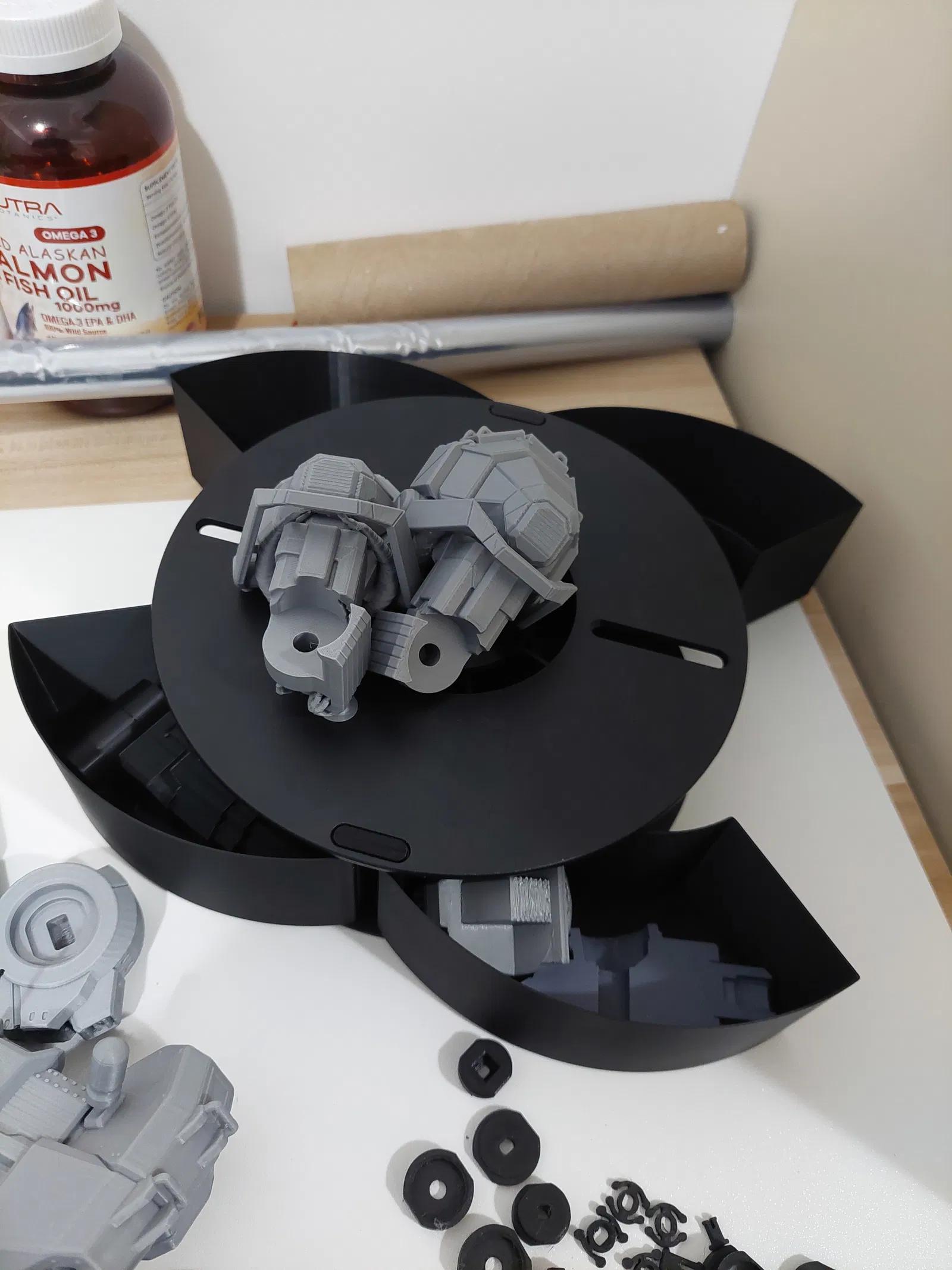 Vòng định vị được thiết kế để vừa vào không gian ở giữa các cuộn để cho phép xếp chồng và xoay các cuộn lên nhau, nhưng trên thực tế, tôi thấy các cuộn của mình có kích thước không gian rất khác nhau ở nơi vòng định vị được cho là vừa vặn. Kết quả của bạn có thể khác. Bạn có thể in chúng với ít lớp độn nhất có thể, chúng không thực sự chịu tải trọng đáng kể.