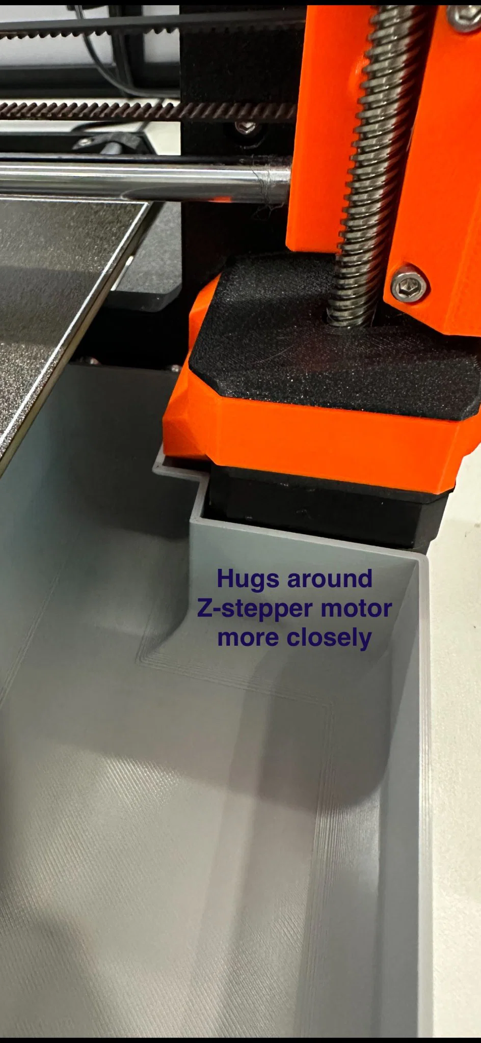 Remix của PRUSA MK4 Bin tuyệt vời của mkoistinen ôm sát quanh động cơ Z (không có khoảng trống)