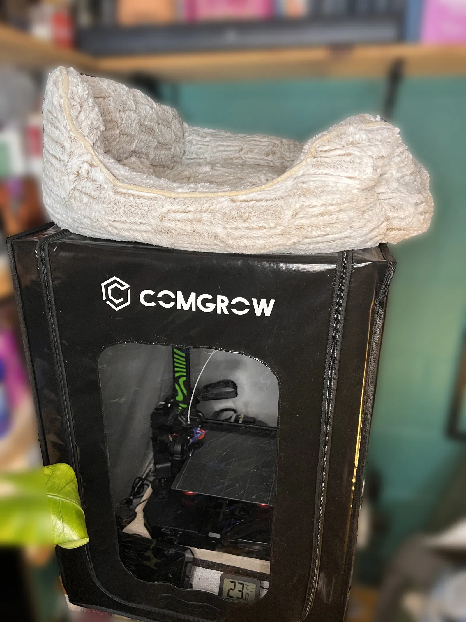Tôi mua cái lều máy in này để khỏi con mèo nó phá máy lúc đang in. Giờ thì nó thành chỗ ngủ khoái khẩu của nó luôn! Nó cứ đè nặng lên trên hoài làm bị cản trở việc nạp dây tóc vô máy, nên tôi chế ra mấy món này để gắn thêm thanh ray lên trên cái lều cho nó đỡ bị xệ xuống... với lại làm cho nó êm ái hơn cho nó nữa!