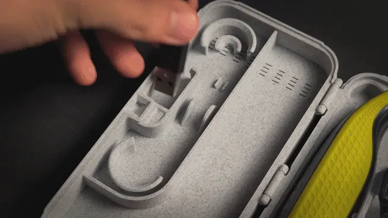 Đây là phần khó: tạo ra một lò xo in thành một mảnh và hoạt động ngay lập tức. Không cần lắp ráp, không có bộ phận thừa nào để mất. Lò xo nằm trong các rãnh nhỏ giúp nó không bị lắc sang hai bên trong khi vẫn cho phép nó nén hoàn hảo. Nhấn nút và nắp bật lên khoảng 5mm, đủ để dễ dàng cầm lấy. Đóng lại và bạn sẽ có tiếng "snap" thỏa mãn (mức độ thỏa mãn phụ thuộc vào lựa chọn vật liệu in của bạn). Trứng Phục Sinh: Di sản Philips
