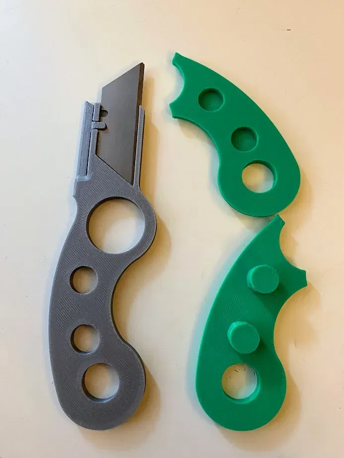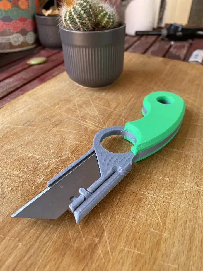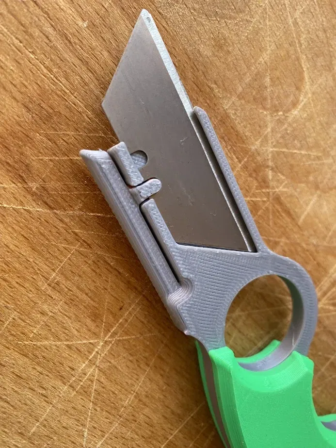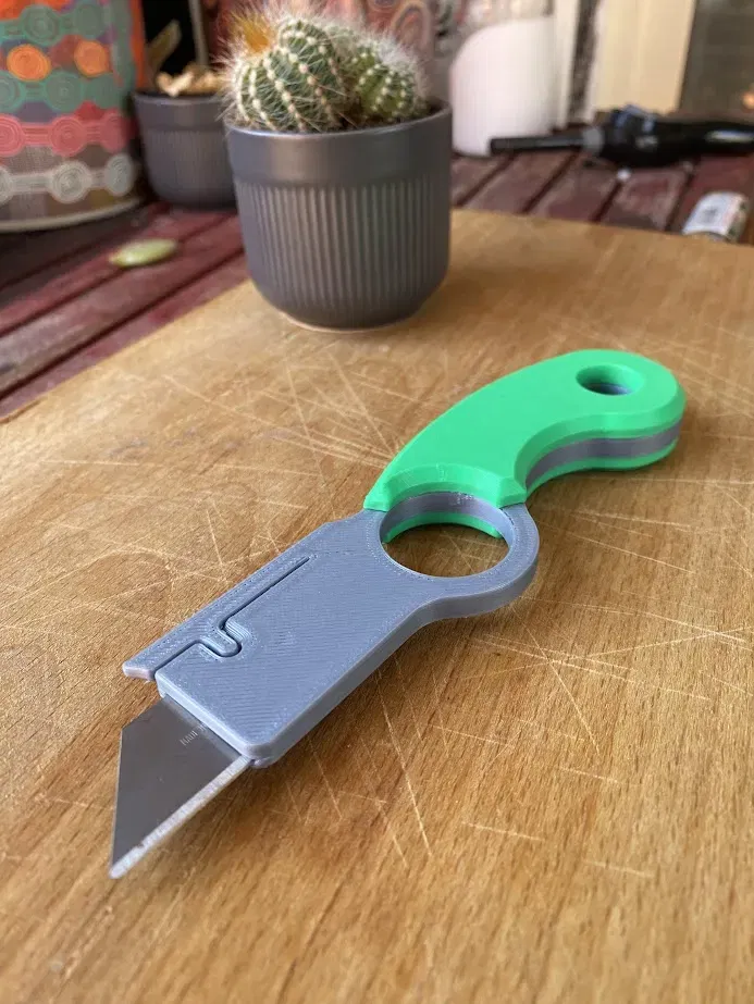 Đây là một giá đỡ lưỡi dao tiện ích công thái học được thiết kế để vừa với lưỡi dao Stanley tiêu chuẩn. Nó không cần vít vì đầu của giá đỡ có một chốt nhỏ có thể gập xuống cho phép lưỡi dao trượt vào. Chỉ sử dụng cho công việc nhẹ.