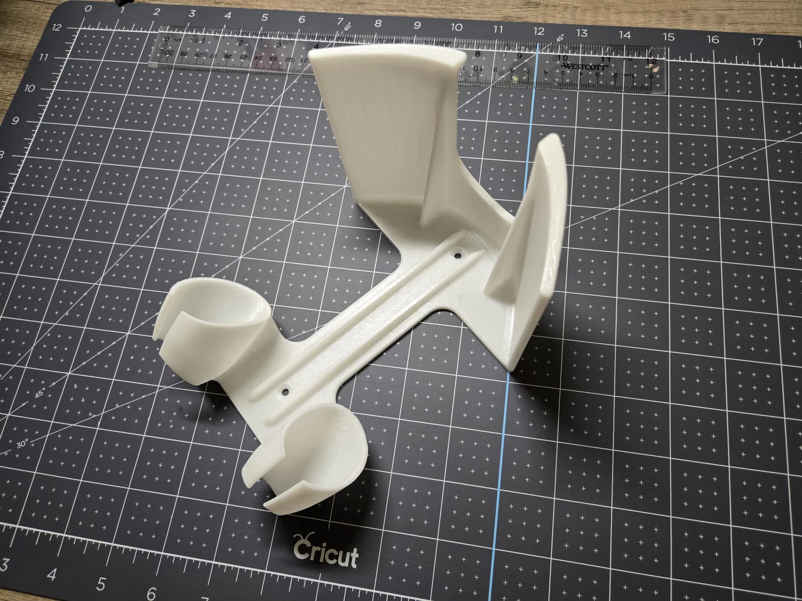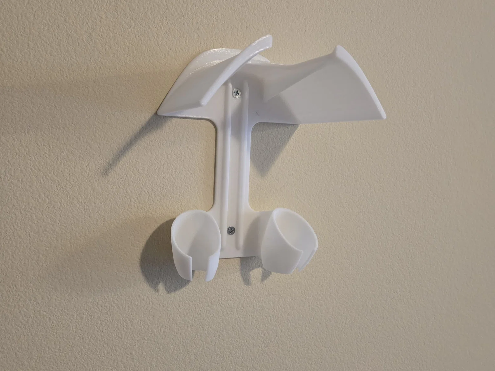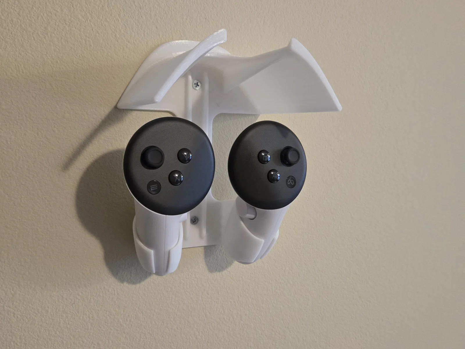 Một giá treo tường gọn nhẹ, nguyên khối cho tai nghe và bộ điều khiển Quest3.
