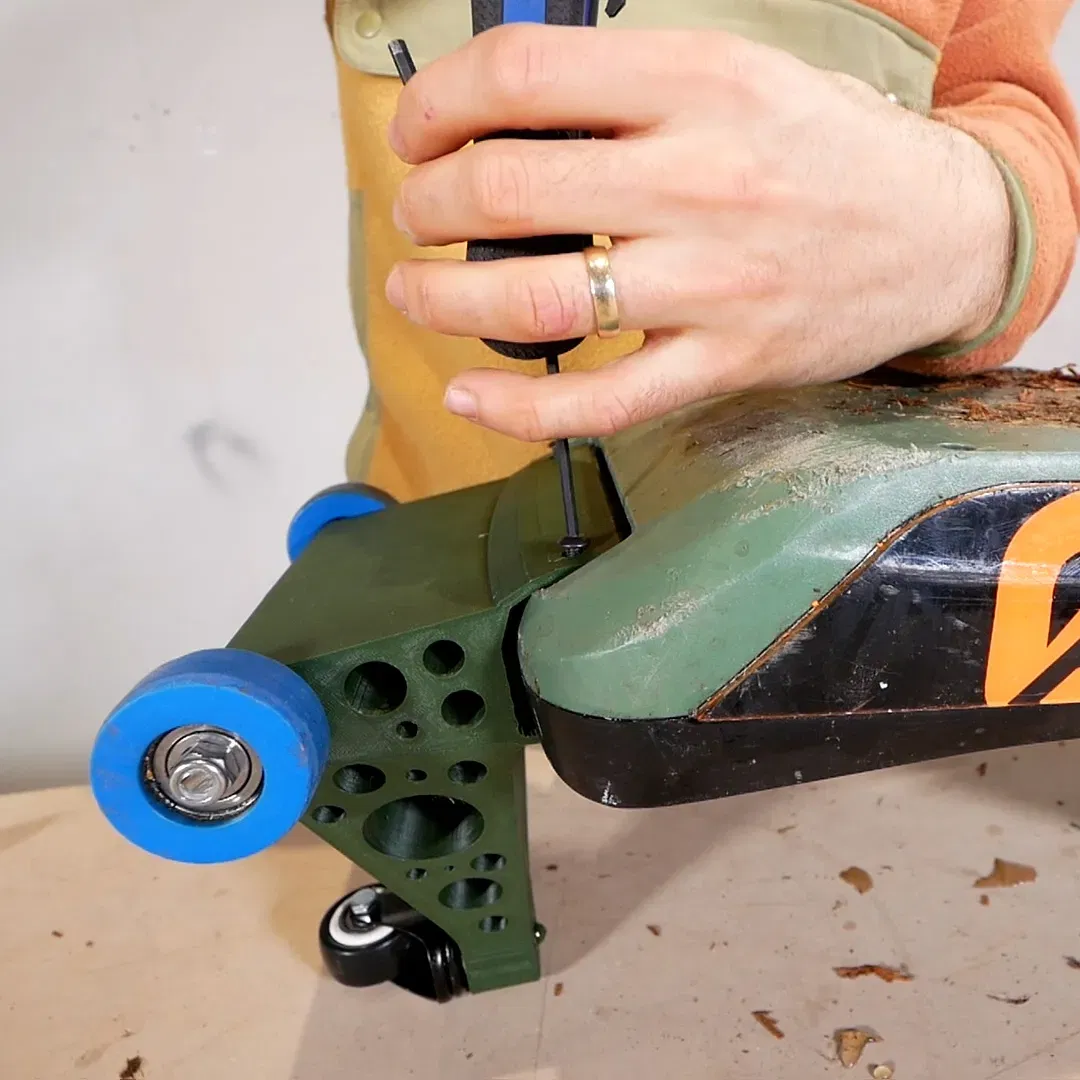 - Gắn vào Onewheel qua các lỗ vít của bộ phận bảo vệ (không cần đế chân FST, mặc dù thiết kế của tôi phù hợp với Onewheel GT có đế chân FST).