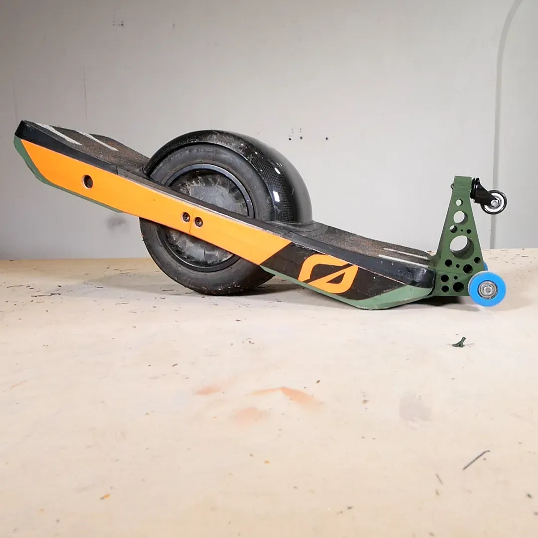 Wheelstand có thể giữ trên Onewheel trong khi lái (nó không cản trở khoảng sáng mặt đất hoặc cản trở chân sau của bạn).