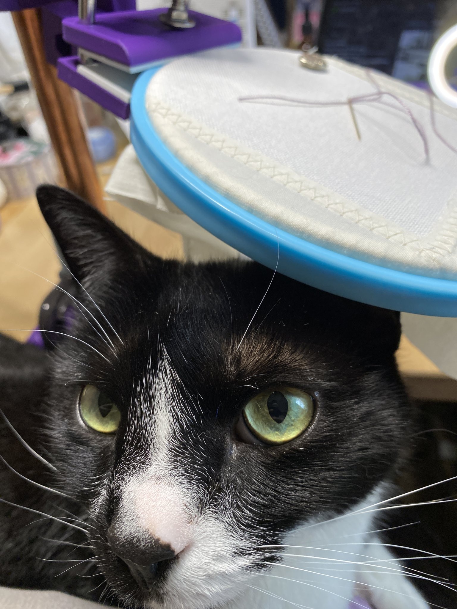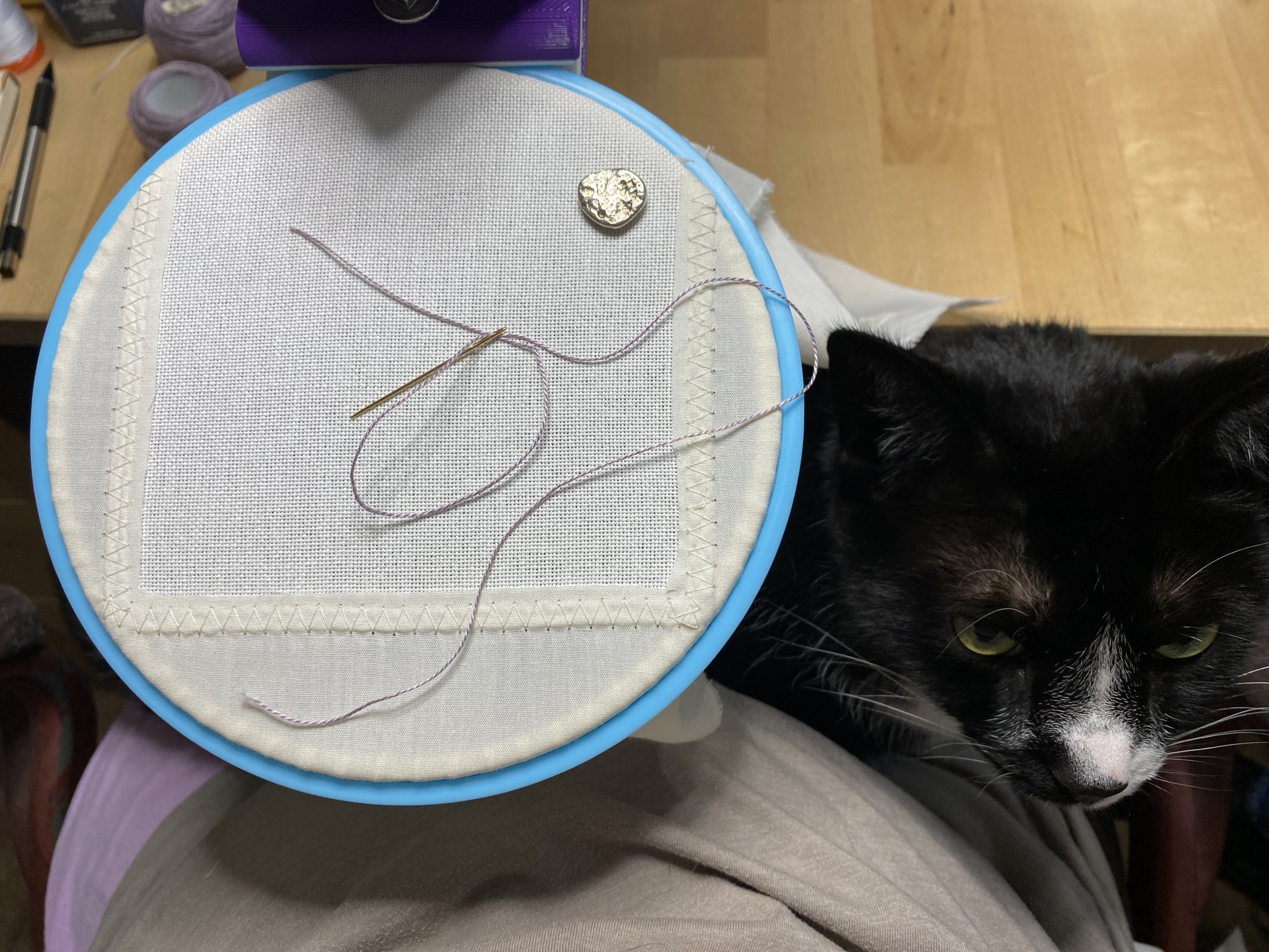 - những chú mèo thích ngồi trên đùi bạn trong khi bạn thêu