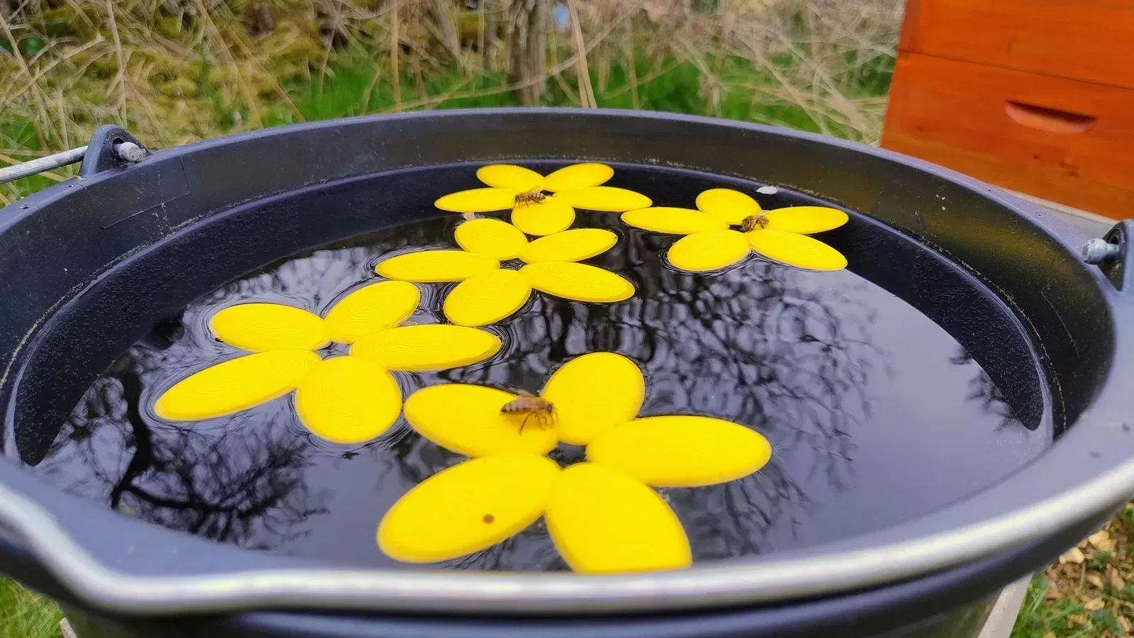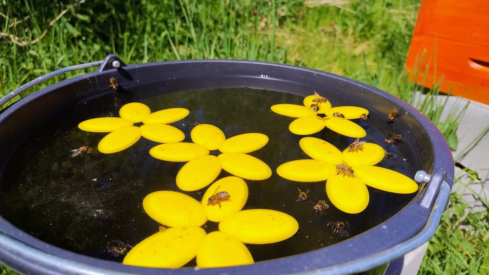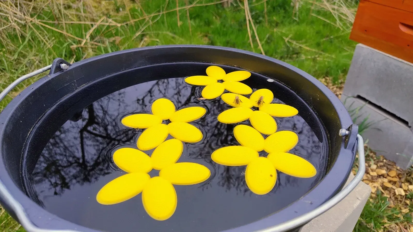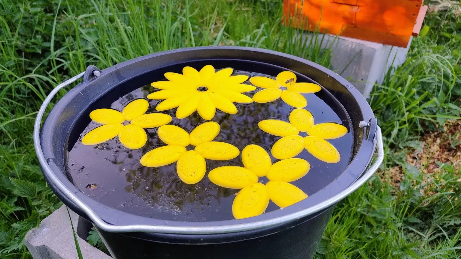 Đặt cái này vào một cái bình nước hoặc bề mặt nước để cho phép các con ong dễ dàng tiếp cận nước.