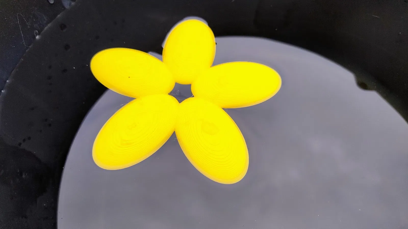 Tôi đã in cái của mình bằng HD PLA, với độ dày lớp 0.2mm, 8 lớp hoàn chỉnh ở đáy, 5 lớp ở trên, và 15% độ đầy gyroid. Bằng cách này, nó nằm ở vị trí hoàn hảo với đủ bề mặt khô để đậu trong khi một độ dốc nhẹ dẫn đến mức nước.