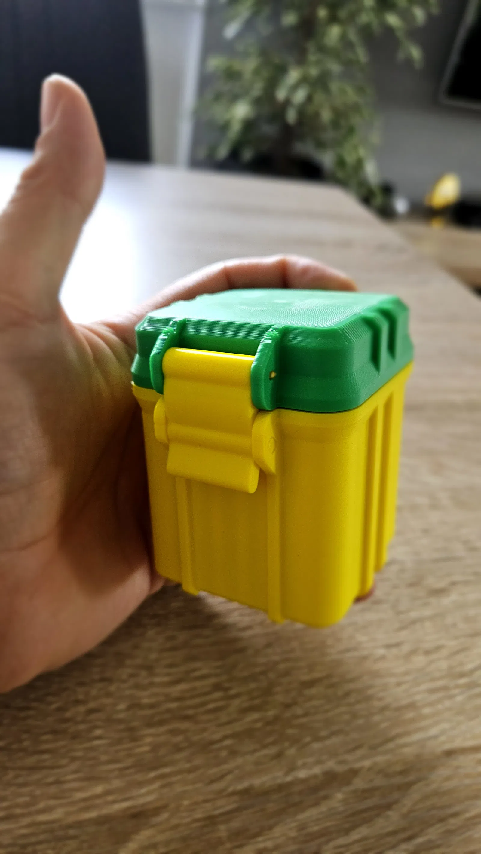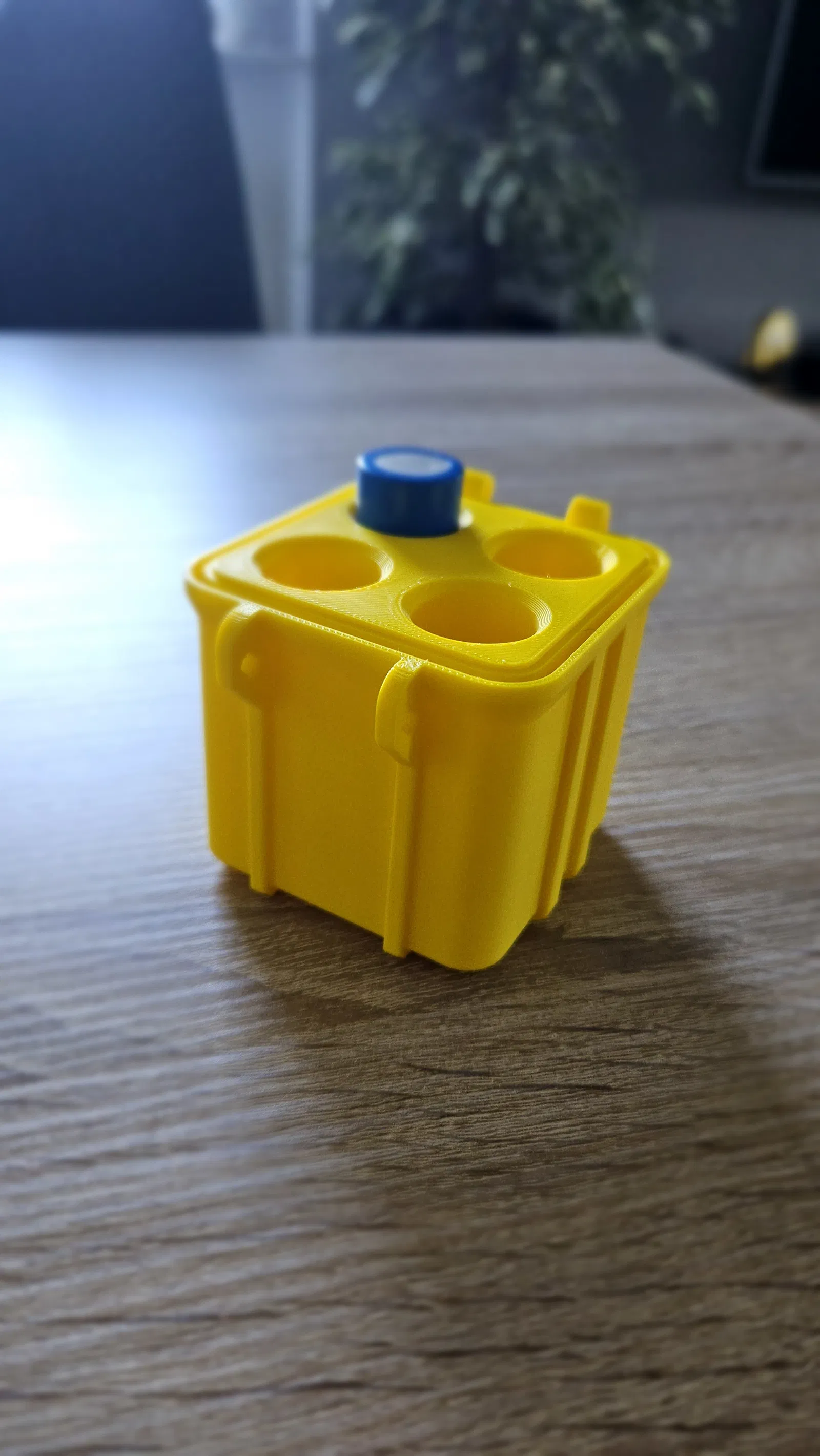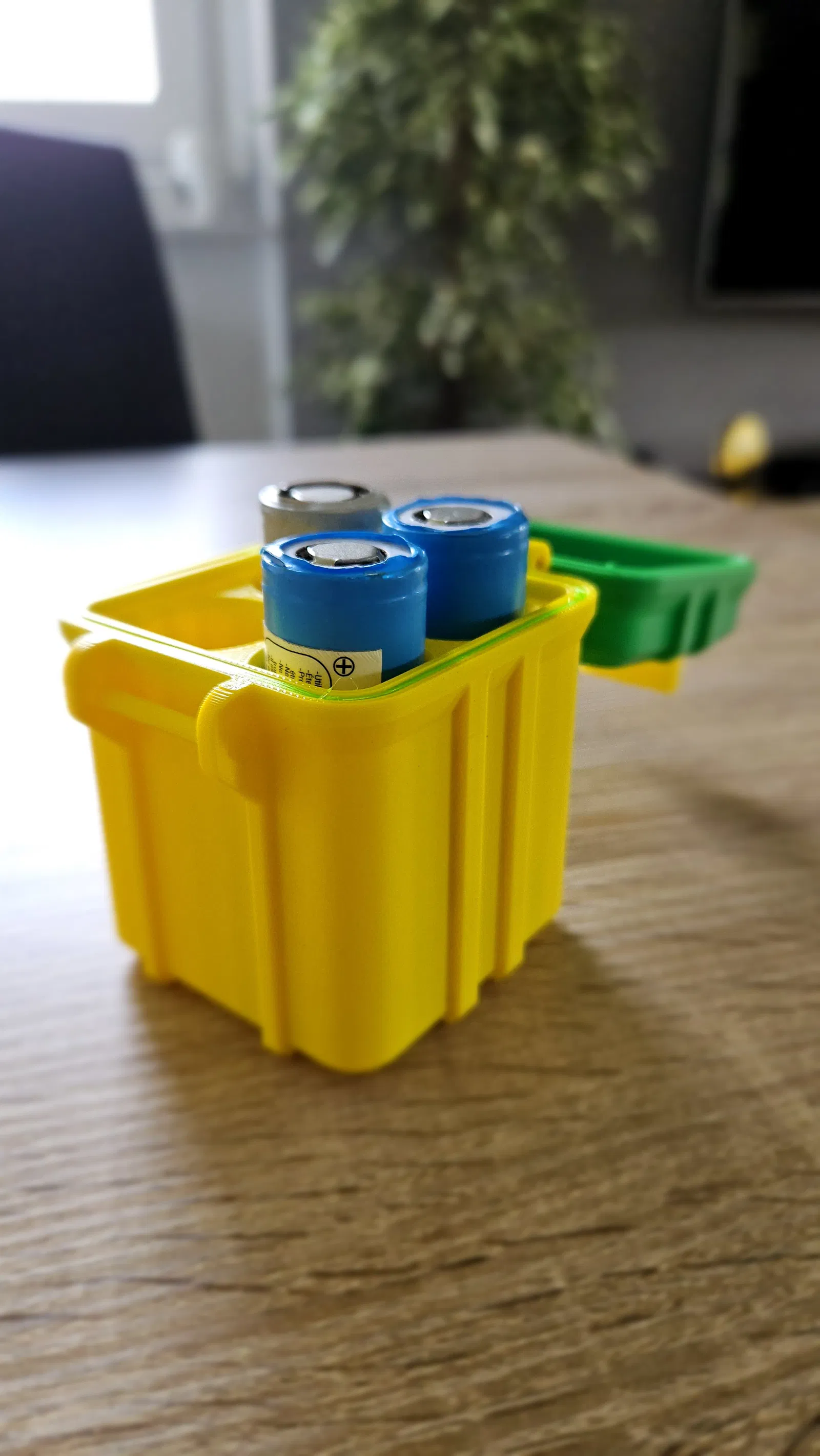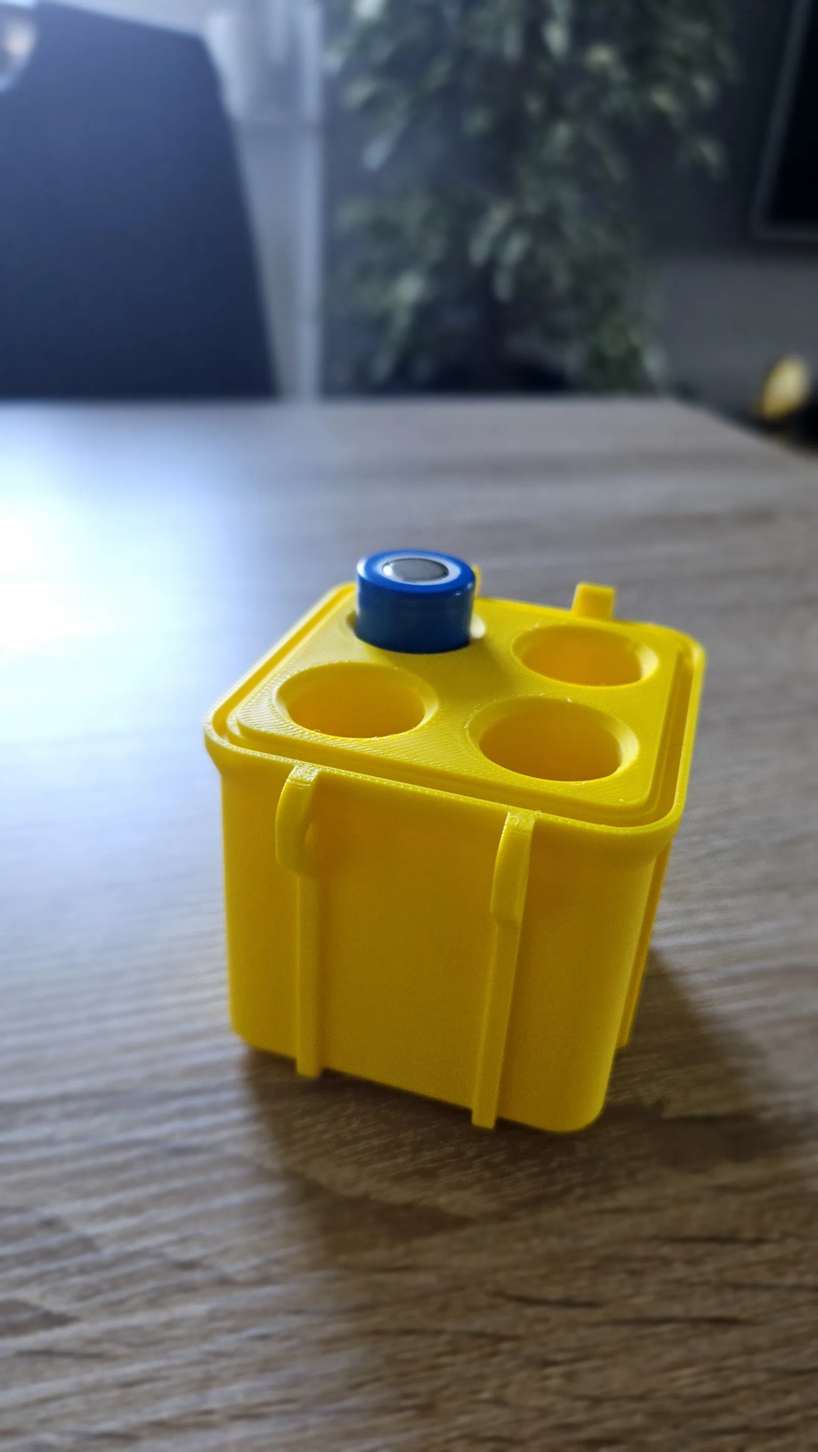 Hộp đựng chắc chắn cho 4 viên pin 21700 hoặc 18650, được in hoàn chỉnh bằng PLA. Phiên bản TPU tùy chọn cho gioăng chống ẩm. Thiết kế tối ưu cho việc vận chuyển pin an toàn, đặc biệt là khi đi máy bay.