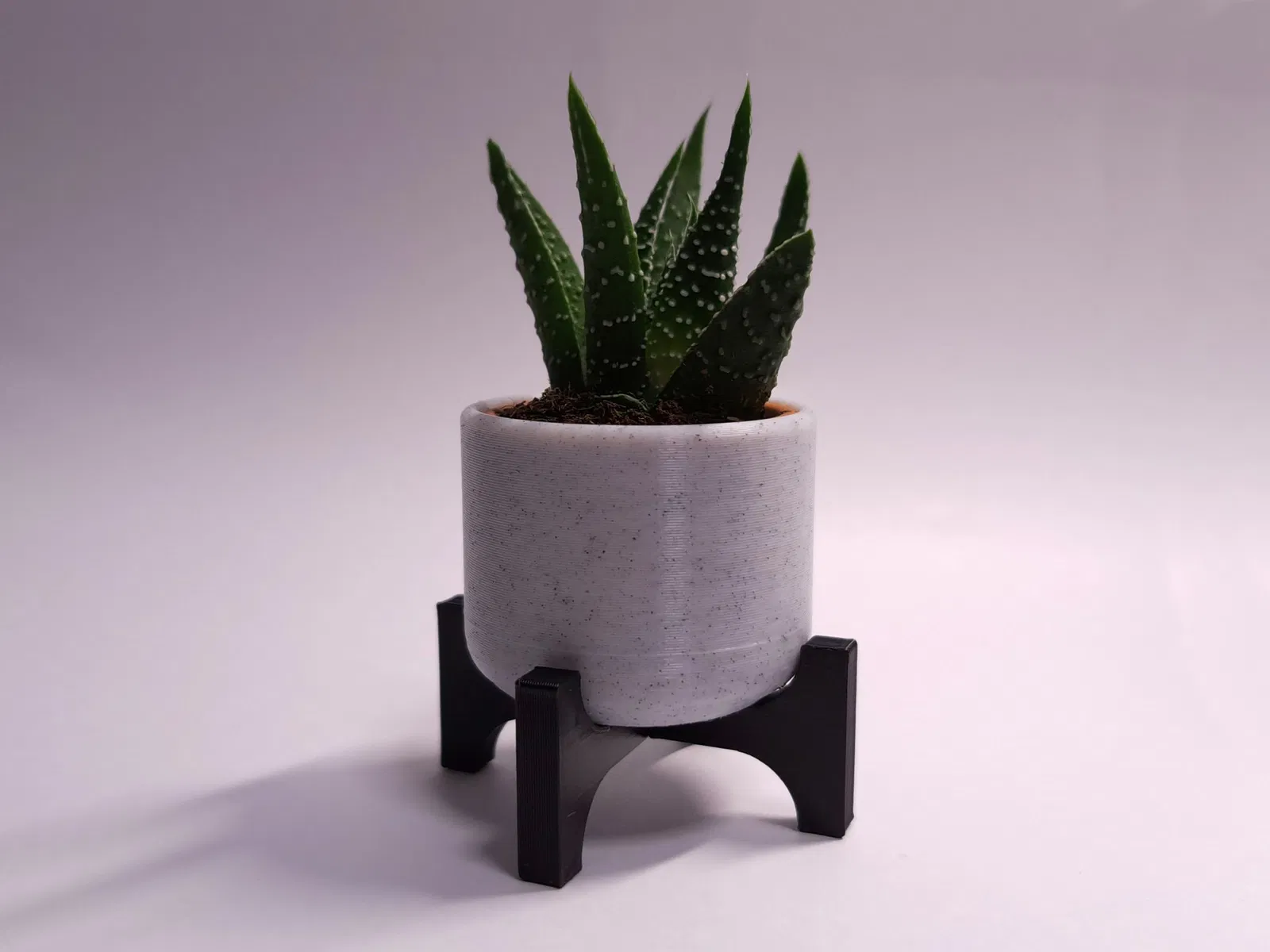 Chậu này dựa trên "Succulent Planter Pot" từ Layers Studio. Tôi đã tham số hóa mô hình và làm giá đỡ thành hai phần để có thể in mà không cần hỗ trợ. Cấu hình này phù hợp với các chậu có đường kính 36 mm, ví dụ như các loại xương rồng nhỏ (3 cm) từ Ikea. Tôi đã thêm một lỗ thoát nước để ngăn ngừa ngập úng. MỚI: Tôi đã thêm một đĩa như một lựa chọn thay thế cho giá đỡ. ### Cài đặt In Infill: 15 % #### Chậu - chiều cao lớp tối đa .16 mm