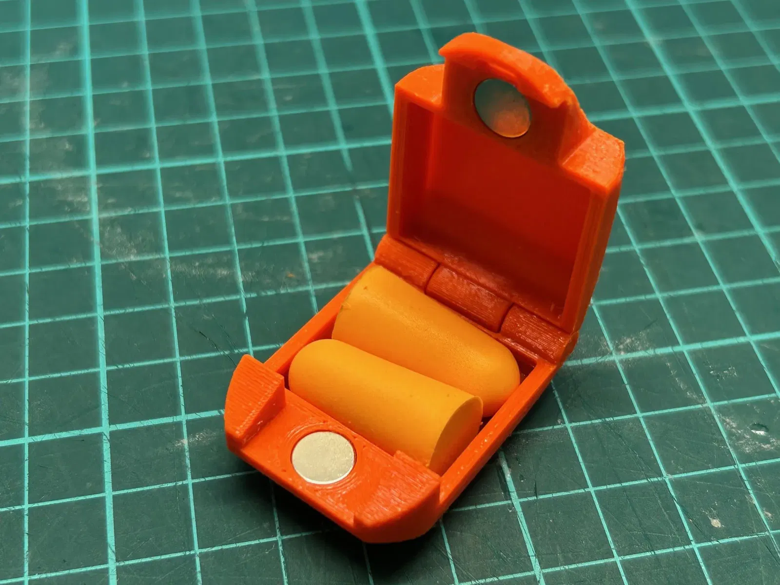 In bằng PETG với bản lề PIP và các rãnh cho 2 x [8mm dia/2mm depth] nam châm neodymium. Sẽ in mà không cần hỗ trợ nhưng tôi thấy rằng lỗ cho dây đeo thì sạch hơn với một chút hỗ trợ (đã bao gồm trong BGcode). Tôi đã sử dụng một ít keo siêu dính để đảm bảo các nam châm giữ nguyên vị trí.
