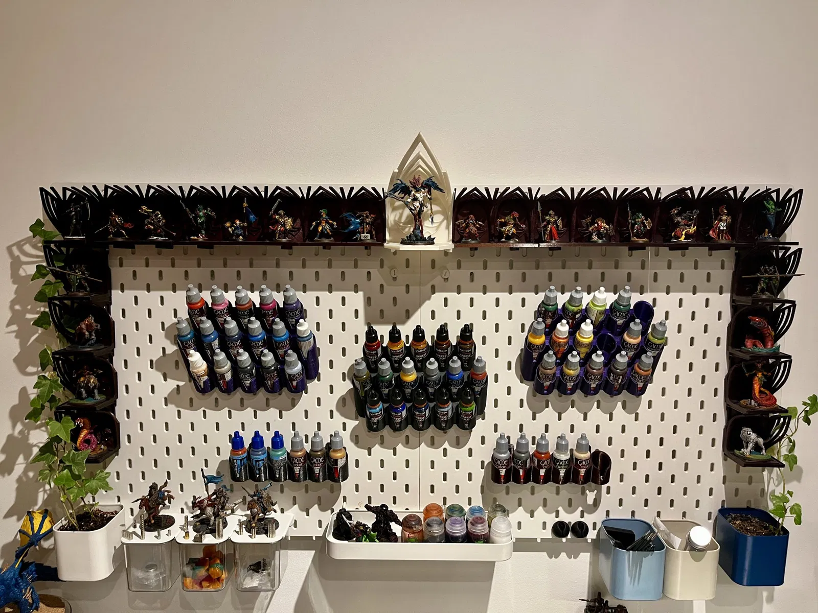 Giá Để Sơn cho Bảng Đinh IKEA Skadis Giá lưu trữ sơn cho chai sơn 26mm có thể được gắn vào bảng đinh IKEA Skadis. Bao gồm các chốt để gắn nó và các lỗ chắc chắn trên giá sẽ không bị gãy theo thời gian. Các bộ phận được thiết kế hoàn toàn trong Onshape CAD nhưng được lấy cảm hứng từ bộ phận sau, rất phù hợp cho số lượng chai nhỏ hơn nhưng có xu hướng gãy ở điểm gắn: < Tương thích với bất kỳ chai sơn 26mm nào, chẳng hạn như Vallejo hoặc Army Painter Đã thêm tệp .step để bạn có thể dễ dàng chỉnh sửa bộ phận theo sở thích của mình ---------------------------------- #### Cập nhật 1 - Lấy cảm hứng từ @Ryan Morrison Đã thêm các tùy chọn cấu hình bổ sung với 5-4-5 hàng để bổ sung cho các hàng 6-5-6 ban đầu. Tuy nhiên, do khoảng cách của các chai sơn và khoảng cách đinh IKEA Skadis sẽ có một khoảng trống nhỏ giữa hai giá sơn. Đã thêm 2 cấu hình bổ sung với 5-5-5 hàng để bổ sung cho cấu hình ban đầu ở bên trái và bên phải. ---------------------------------- ##### Các bộ phận khác của IKEA Skadis Xem thiết kế Skadis khác của tôi cho các mẫu trưng bày ở đây: <>