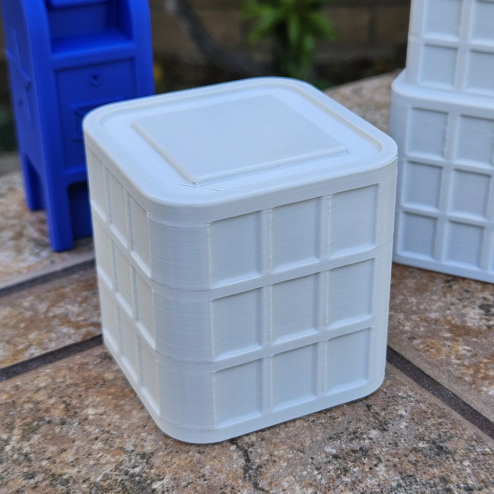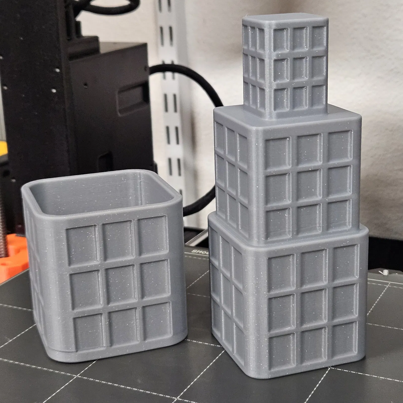 Cả hai phần của bản in “Hộp Tòa Nhà Chọc Trời” đều không cần hỗ trợ. Được thiết kế để vừa với mô hình “Hòm Thư” của tôi, nó chắc chắn có thể chứa một vài vật dụng nhỏ khác. Phần đáy có thể được lật ngược để giữ phần còn lại của tòa nhà để tăng chiều cao, hoặc sử dụng nó như một cấu trúc phụ riêng biệt. Nhiều Mô Hình Hơn: Bộ sưu tập tất cả các mô hình được phê duyệt cho Chiến dịch In Ấn Cộng Đồng Giáng Sinh 2024 ### Thông Tin Bổ Sung và Cài Đặt In Phần trên có kích thước 59 x 59 x 150 mm. Phần đáy có kích thước khoảng 68 x 68 x 70. Tôi đã in với chiều cao lớp 0.25 mm, 3 viền, 3 lớp trên và dưới, và 15% độ đầy hình chữ nhật. Lưu ý: Chú ý đến việc cầu nối trên đáy. Tùy thuộc vào phần mềm cắt của bạn, bạn có thể thấy cầu nối tốt hơn ở góc 45° (sử dụng cài đặt phần mềm cắt hoặc xoay đối tượng quanh trục z). Không cần hỗ trợ. Không cần nền. | Nếu bạn đang in cho Chiến dịch In Ấn Cộng Đồng, hãy chắc chắn sử dụng các hướng dẫn thích hợp: Hướng dẫn In Ấn Chiến dịch In Ấn Cộng Đồng Giáng Sinh 2024 |