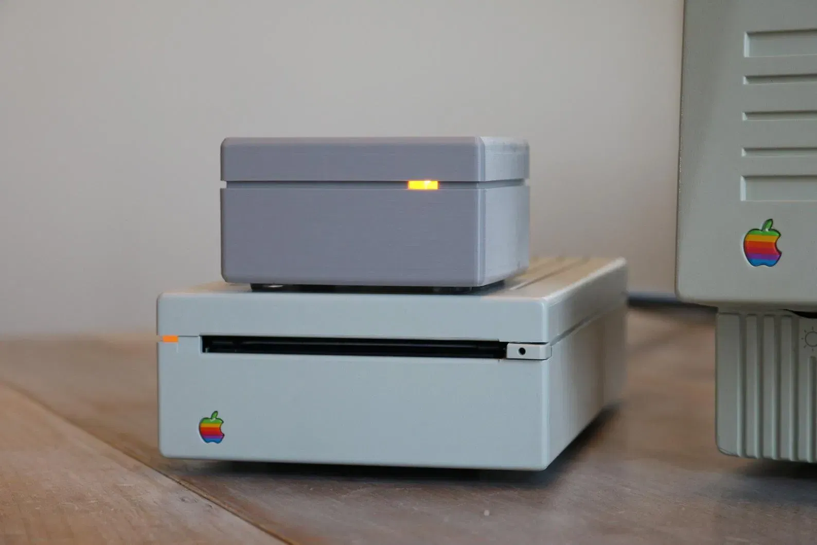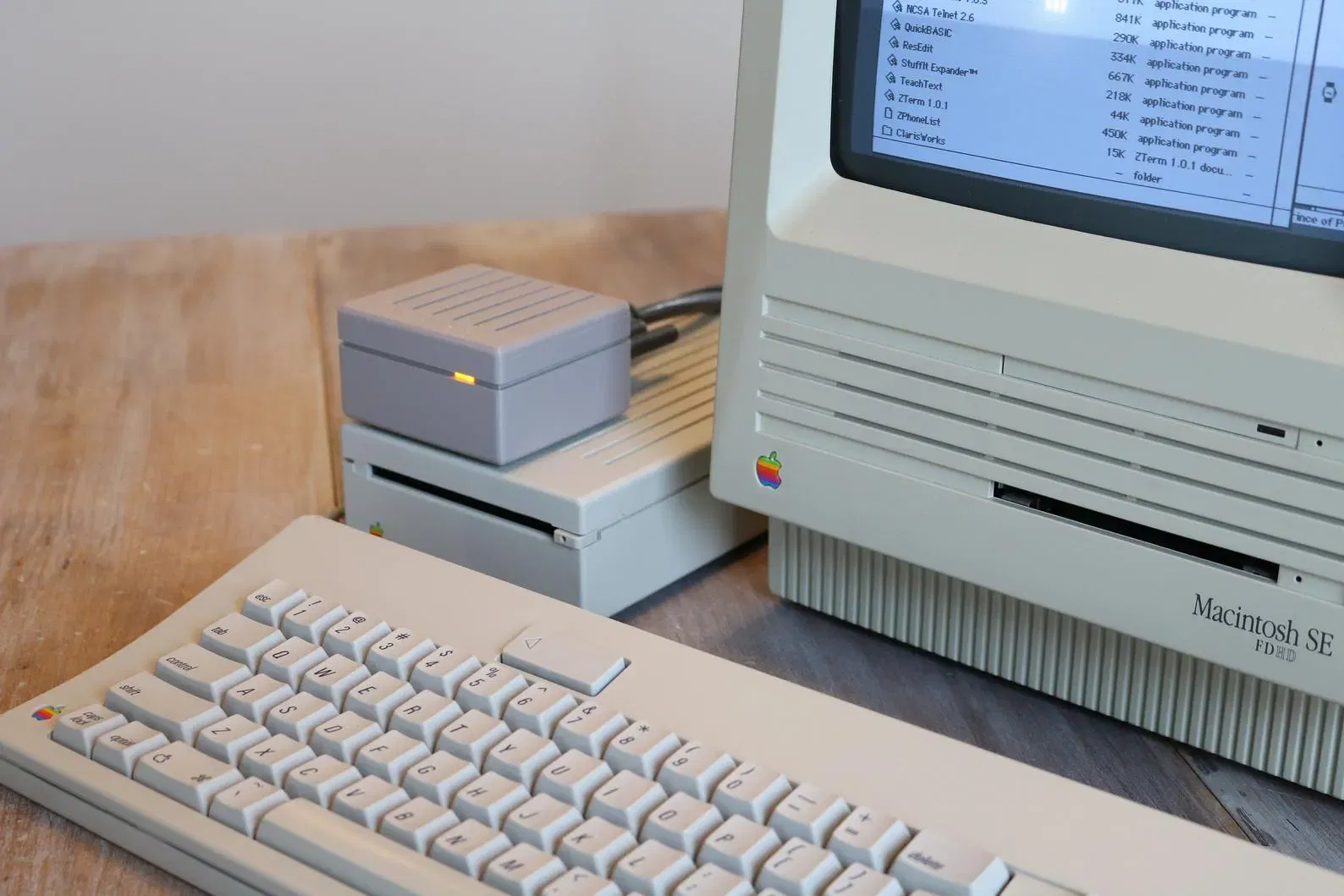 - Ngôn ngữ thiết kế "Snow White", trông thật tuyệt khi xếp chồng lên một SuperDrive bên ngoài (hình ảnh), với một Apple HD 20SC, hoặc chỉ đơn giản là bên cạnh máy Macintosh SE, SE/30, hoặc máy thuộc dòng LC
