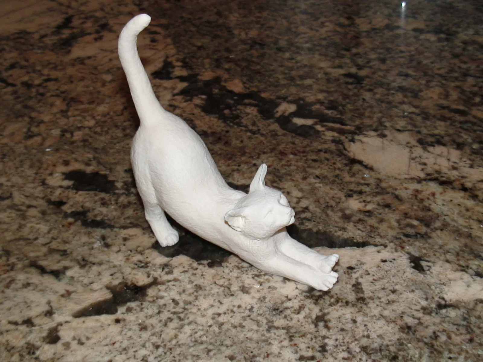 Bức tượng mèo nhỏ đang trong tư thế vươn vai, được phục chế và quét lại. Bản in 3D từ ABS cứng cáp, chống chọi tốt hơn với mèo cưng. Hướng dẫn in chi tiết, bao gồm cả hỗ trợ và cài đặt trục Z.
