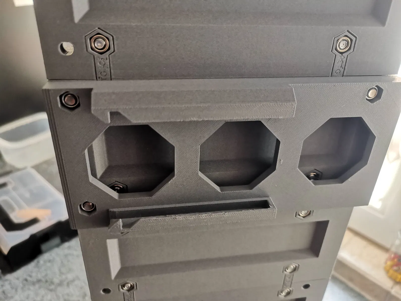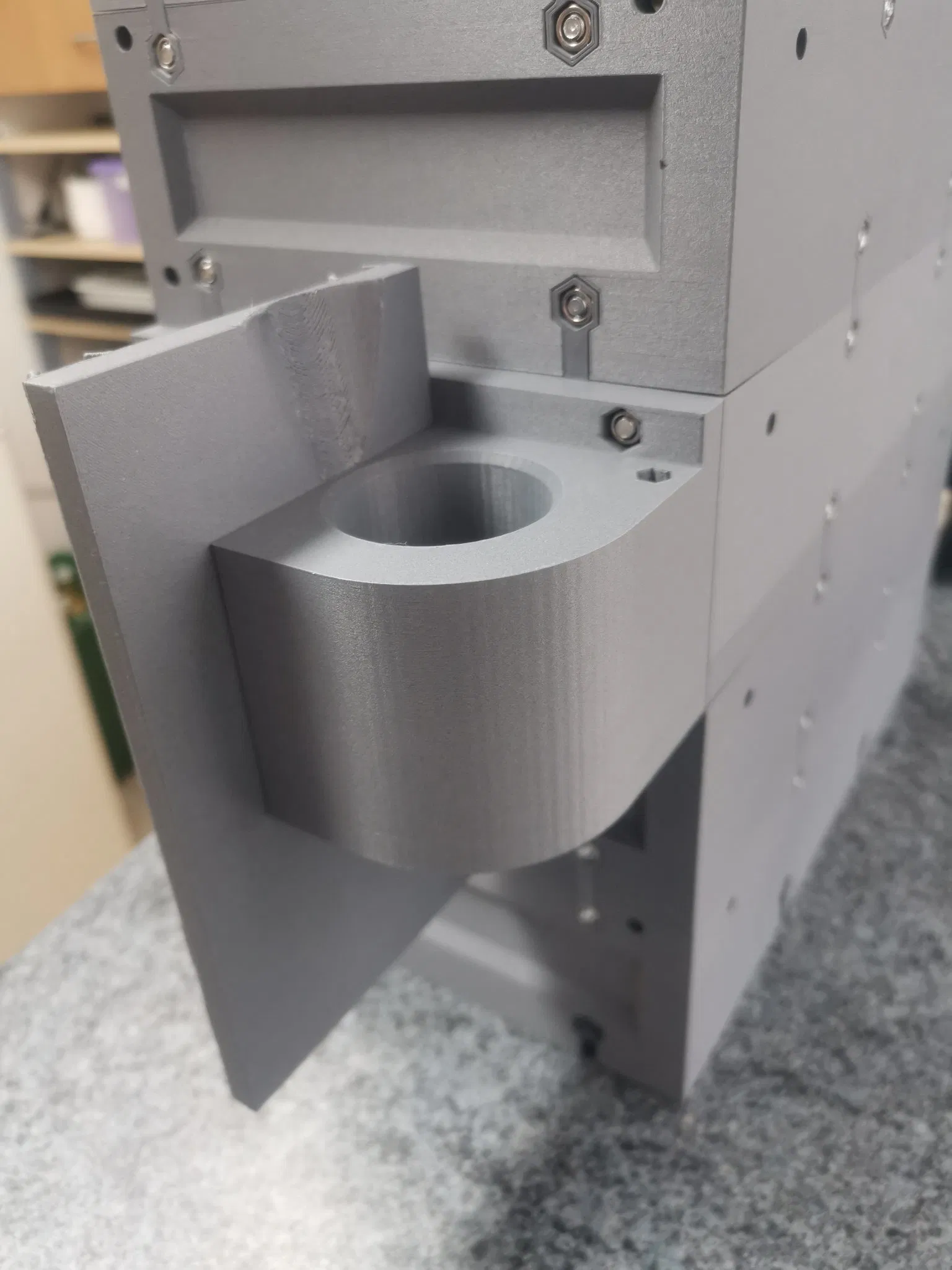 Khi in các bộ phận chuyên môn bên trái và bên phải, bạn không cần giá đỡ và có thể đơn giản ghép các bộ phận lại với nhau, đối với các kết nối thẳng đứng và ngang, vui lòng in với giá đỡ.