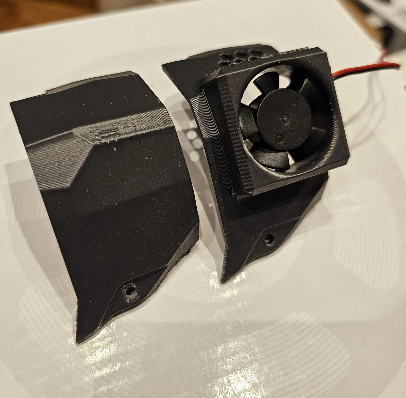 Như nhiều người khác, tôi đã gặp phải nhiệt độ cao (trên 85 độ C) trên bảng công cụ EBB2209 của mình, cho máy Voron CAN (2.4 R2 Pro). Tôi đang sử dụng Stealthburner với bộ trục CW2 và không có tùy chọn nào phù hợp với nhu cầu của tôi, đó là CW2 + quạt 3010 (24V) và EBB2209 với khoảng cách đủ. Do đó, tôi đã sử dụng vỏ PCB gốc từ kho GitHub file STEP và remix nó thành một cái phù hợp. Quạt được lắp chặt, vì vậy không cần bu lông. Bạn sẽ cần một đầu nối 3 chân để nối dây quạt đúng cách và kết nối với bảng EBB. Bạn có thể mong đợi nhiệt độ giảm từ 10-15 độ. Tôi đã sử dụng hướng dẫn nối dây từ Galileo 2 Cable Cover With 3010 Blower Fan by Aileoze Nối dây đến “IND Or FAN” trên bảng công cụ (jumper đặt thành FAN). Đất được nối với chân GPIO6 và kích hoạt quạt trong Klipper khi hotend đang BẬT bằng cách sử dụng cấu hình sau: ```plaintext [controller_fan toolhead_fan] pin: EBBCan:gpio6 kick_start_time: 0.5 heater: extruder max_power: 1